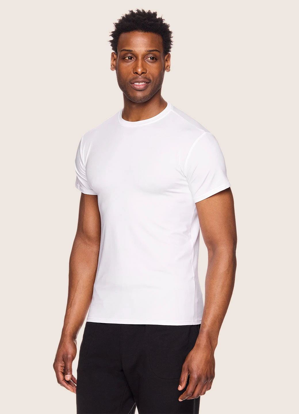 Our men’s crewneck undershirts provide soft, breathable comfort whether you’re working out or taking it easy. A classic crew neck, short sleeve design with a body skimming fit and tag-less construction ensures easy layering without irritation for a lightweight t-shirt you can wear as an undershirt or for regular casual wear. Package includes two undershirts.