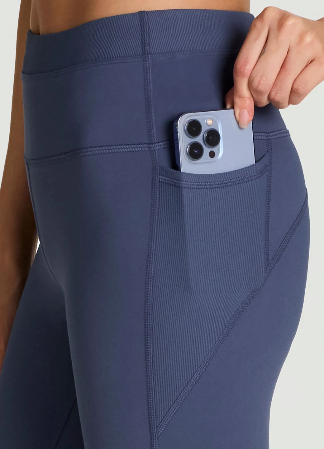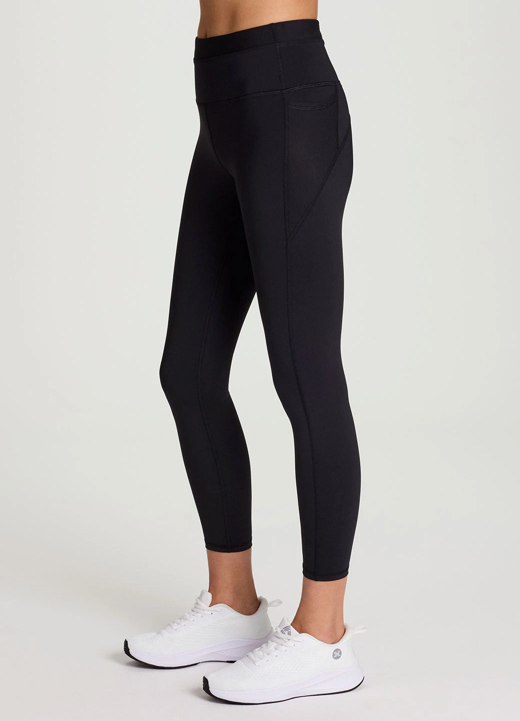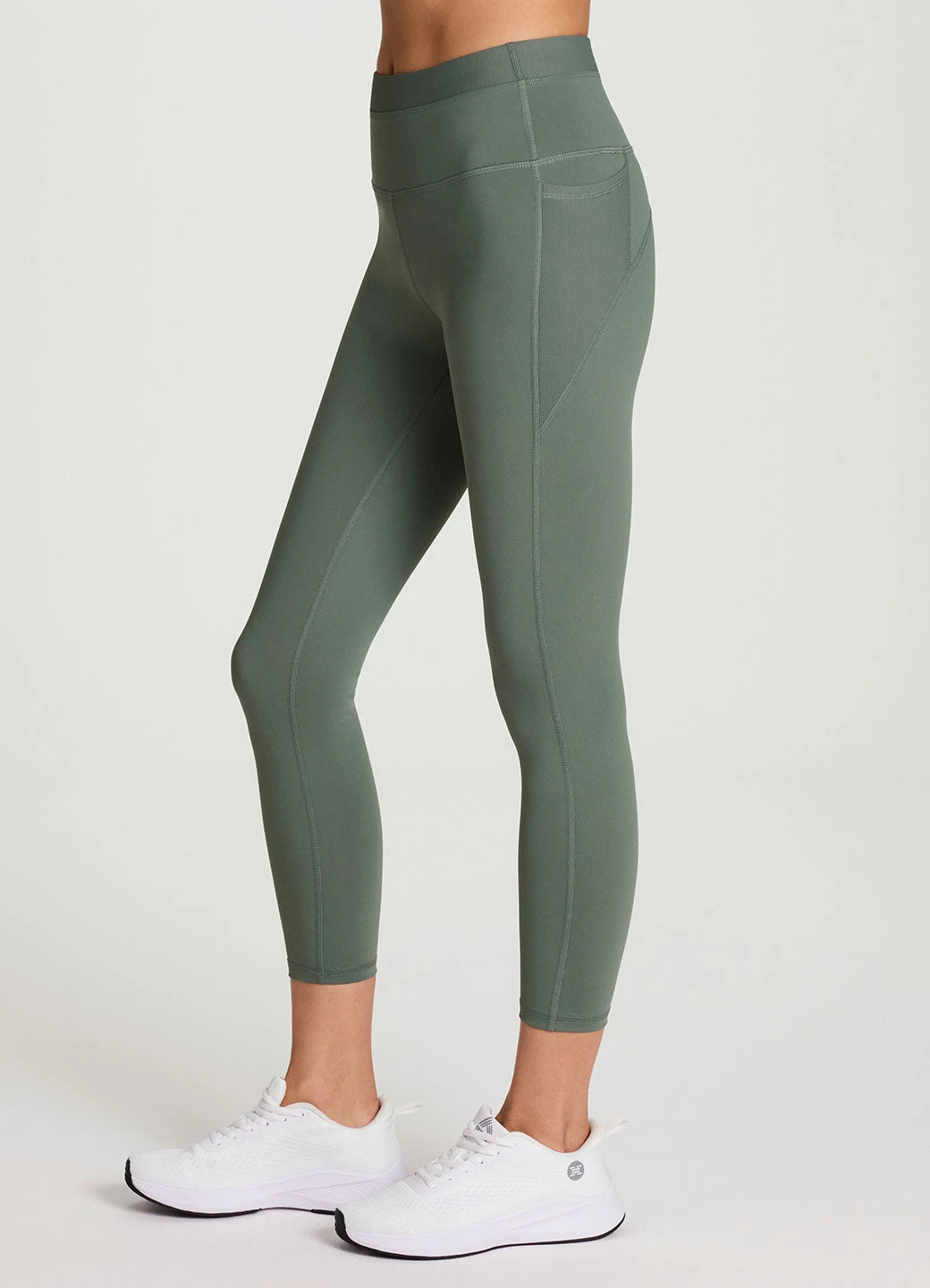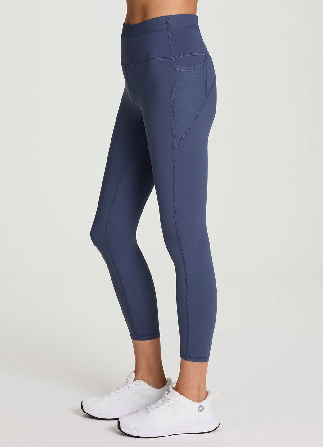 Crafted with quick drying, squat proof stretch fabric and thoughtful details that offer a sporty flair, our Always in Motion 7/8 Legging delivers functional performance without sacrificing style. The 7/8 ankle length design features full sized side pockets plus sporty seaming details and a back yoke for a more flattering fit, while a high rise waistband comes with a ribbed top trim for a fashionable legging you can wear from studio to street.