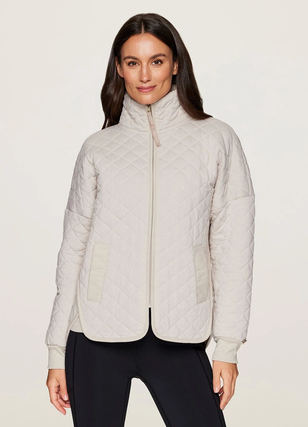 Step out in confidence throughout the seasons in our Echo Quilted Jacket. Constructed with soft quilted fabric for transitional wear, this zip up jacket is features side pockets for your essentials, a full zip closure for easy on/off and a mock neck design that zips all the way up to help seal in warmth. Plus, a breathable relaxed fit combines with dropped shoulders and wrist cuffs for a versatile everyday jacket that doesn’t sacrifice comfort for style.