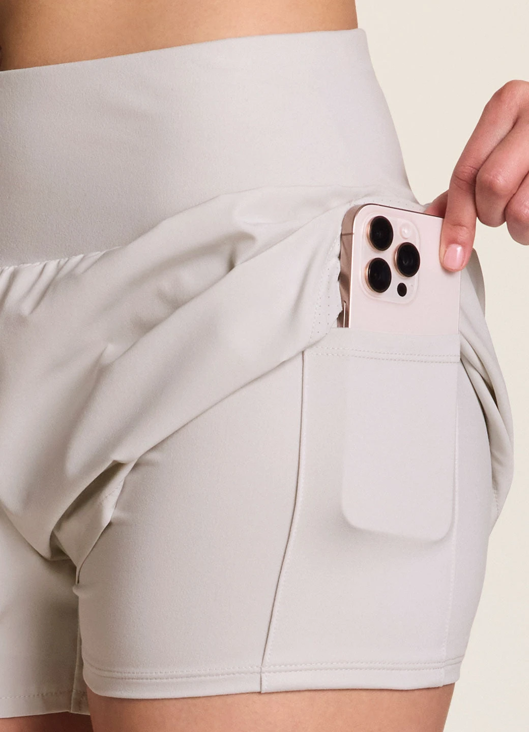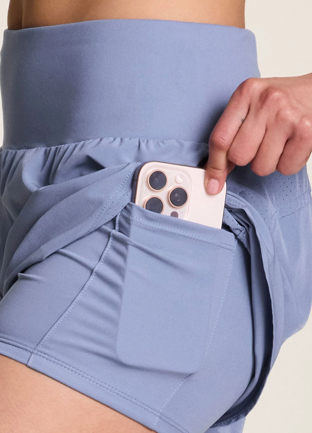 Constructed with lightweight stretch woven fabric and lined with an attached inner biker short that offers added coverage and support, our Keep The Pace Running Short offers quick drying comfort while working out, hiking, walking your dog and more. A flattering wide elastic waistband, small back waistband pocket and perforated mesh yoke detail combine for convenient functionality without sacrificing performance.