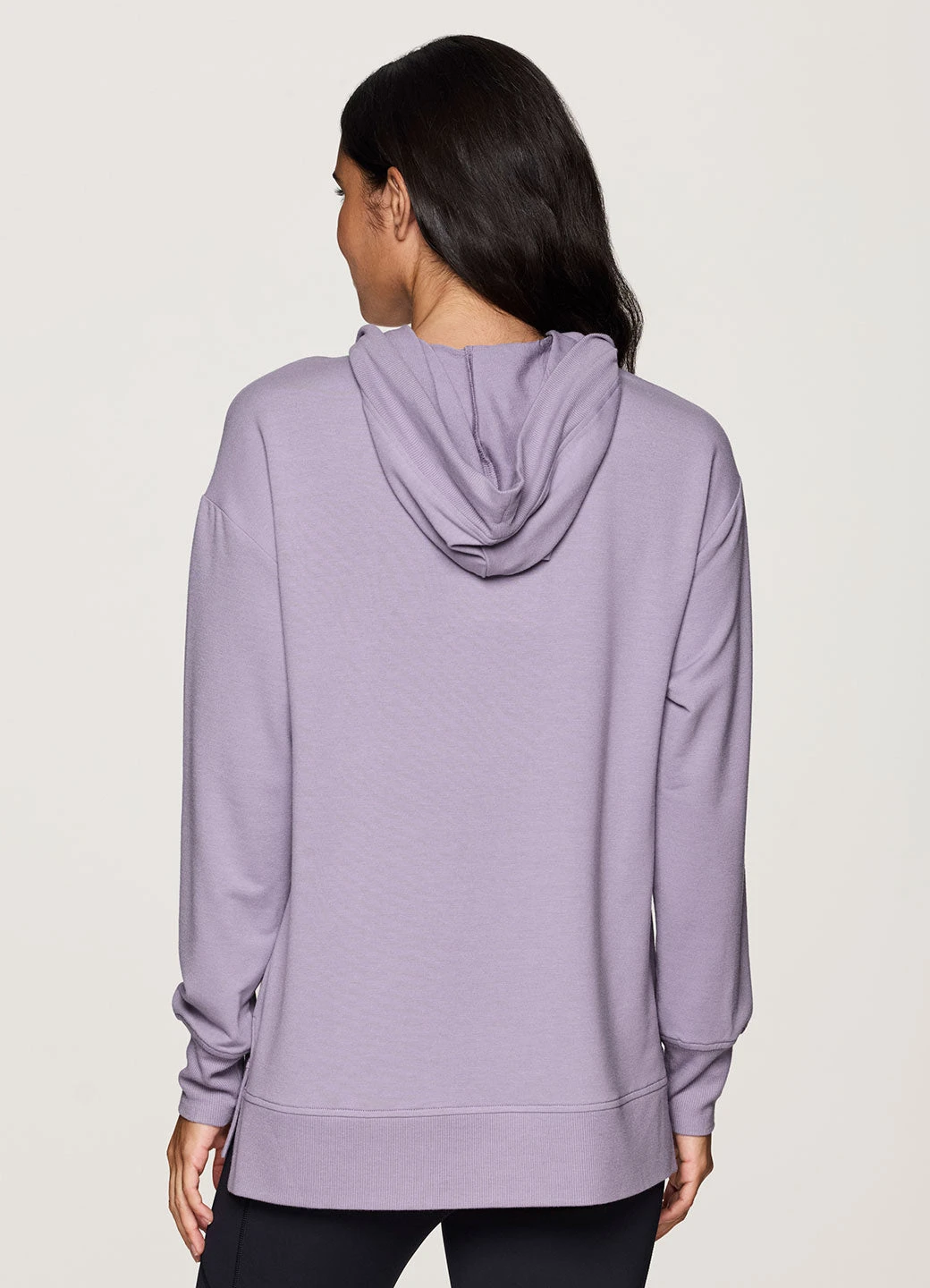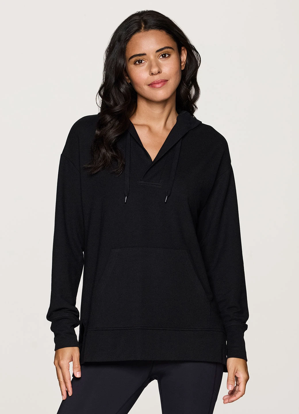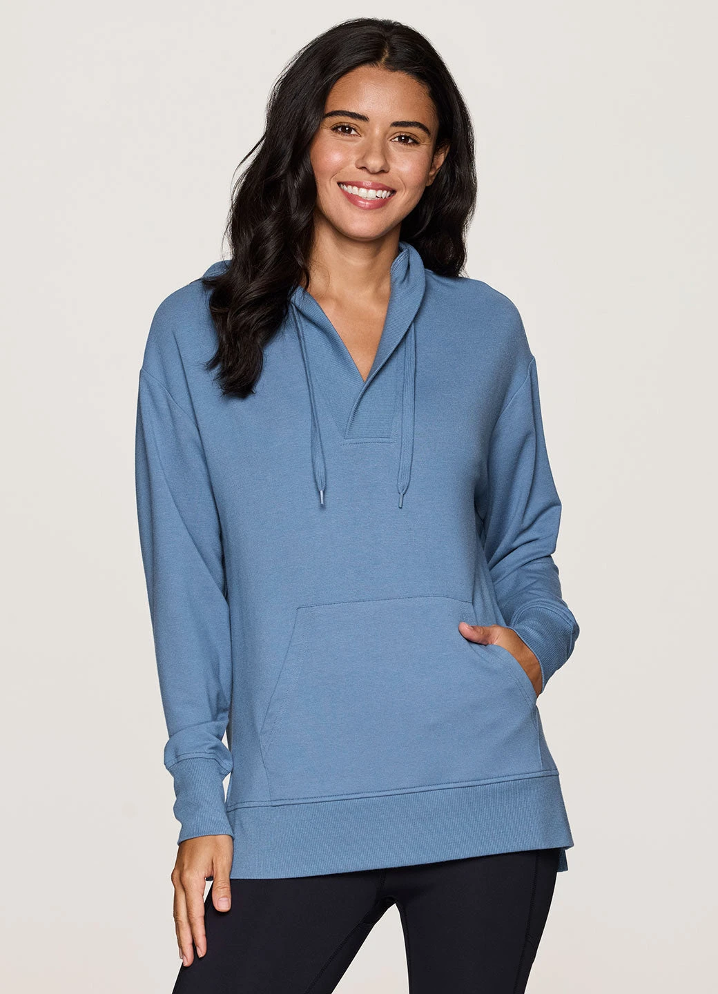 Featuring a functional front pocket and lightweight, breathable french terry fabric, our Long Weekend Hoodie Tunic was designed for versatile wear without sacrificing style. A slightly oversized, tunic length design offers optimal comfort, sleeve scrunching and layering options, while an attached hood with adjustable drawstrings protects you from the elements. Finished with a flattering v-neckline, this legging-friendly pullover can be worn year-round with your favorite active legging or fashion bottoms for an easy, cohesive look.