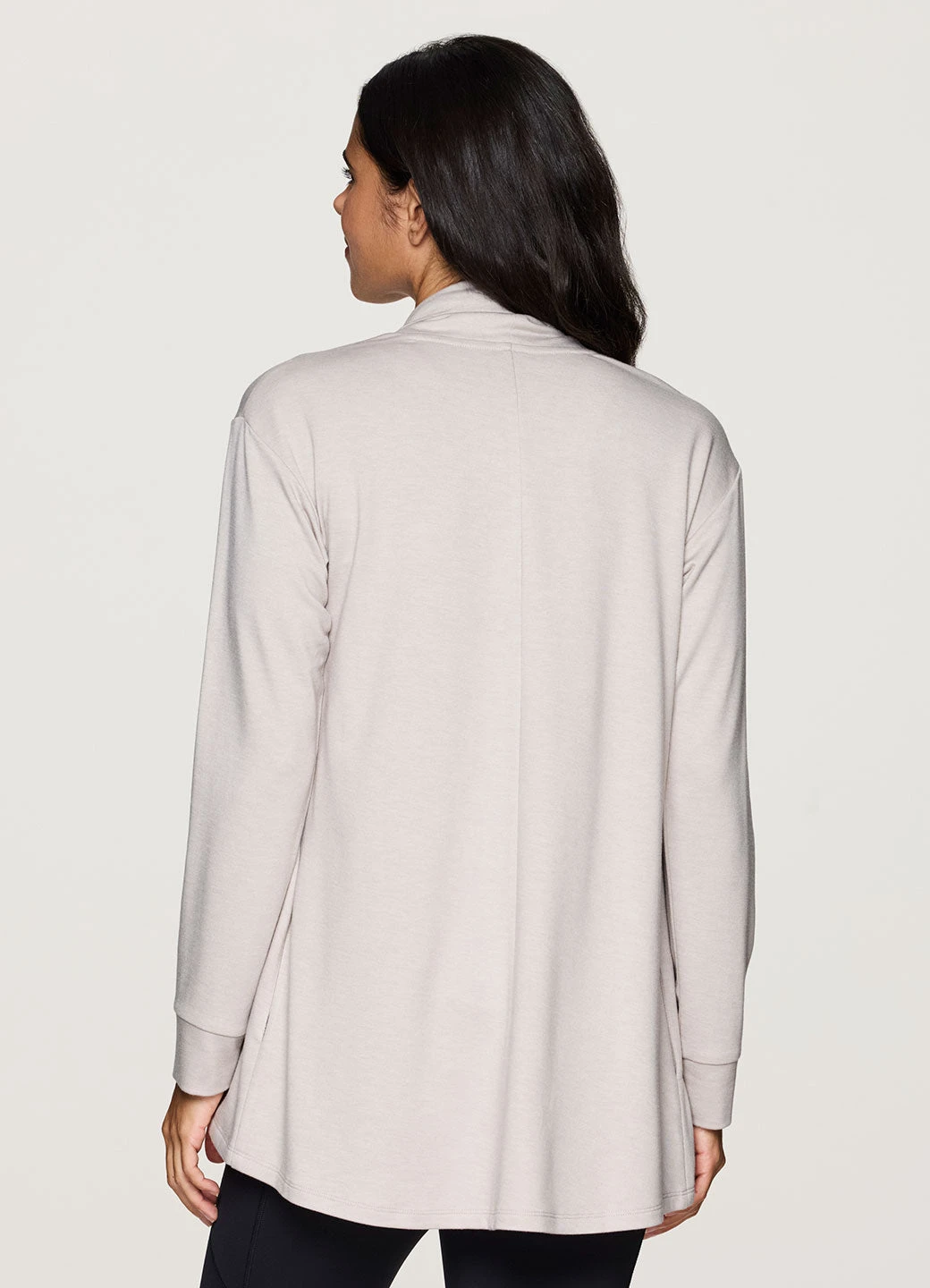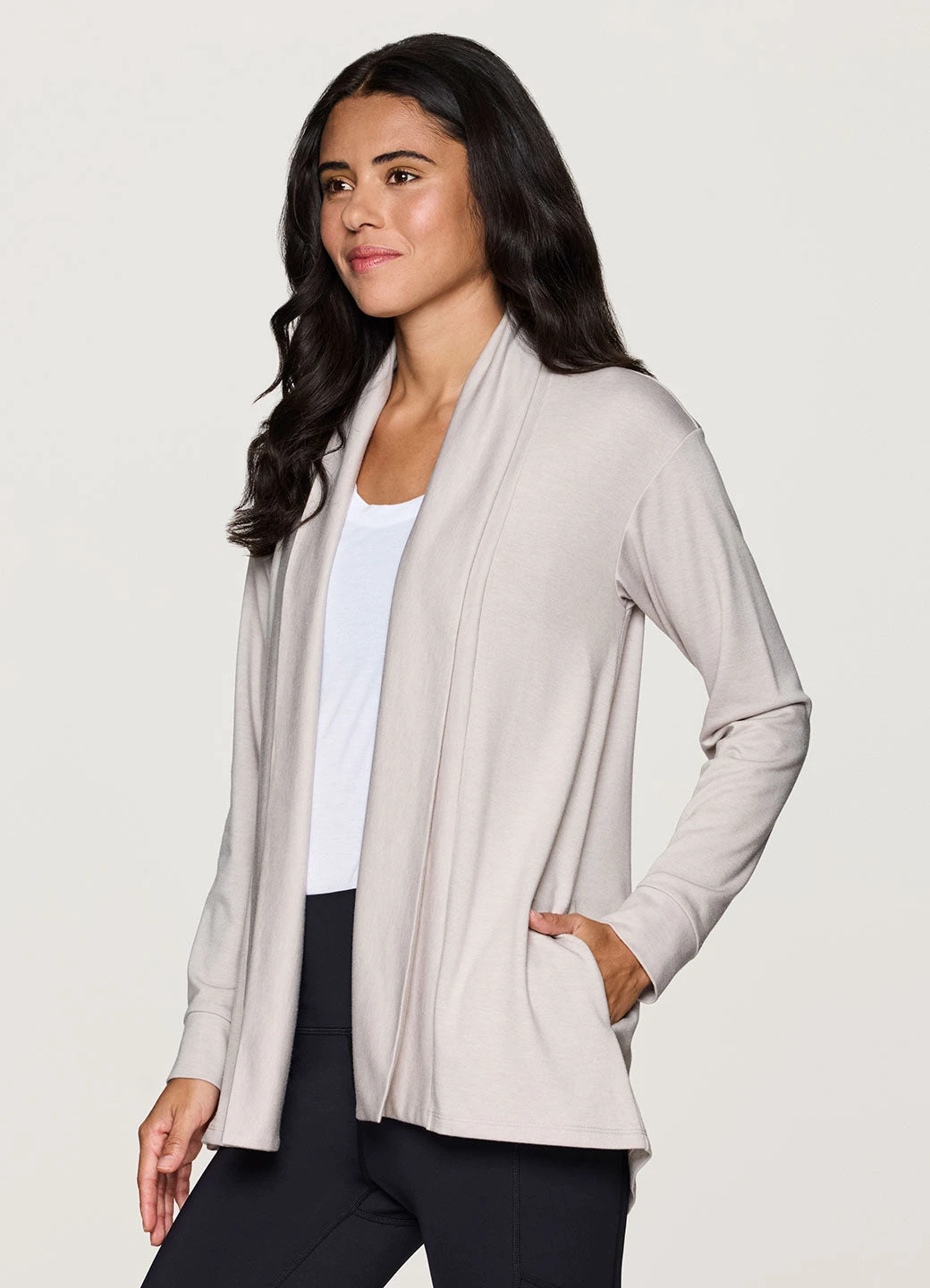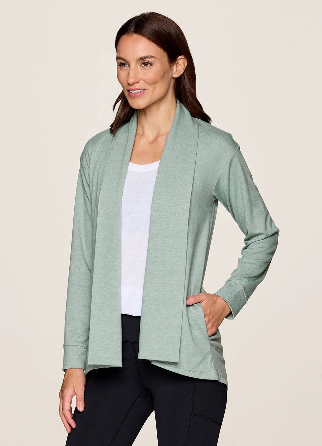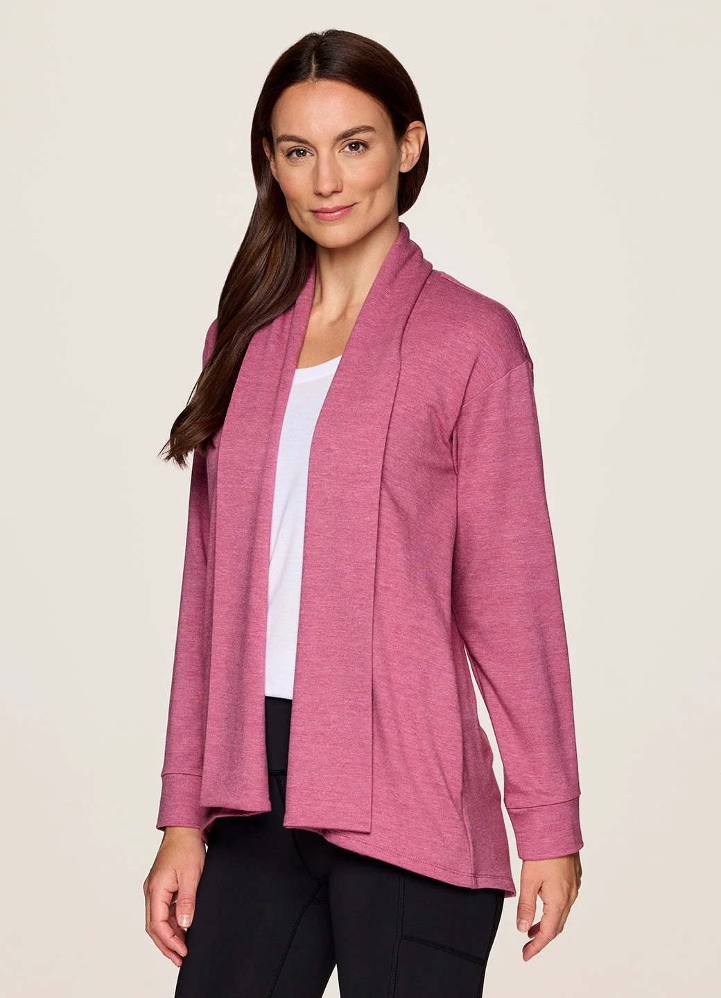 Unwind and reset in our Lotus Open Cardigan. This long sleeve top is constructed from ultra lightweight french terry fabric with an open front design that’s perfect for layering and year-round wear. A relaxed fit combines with side pockets, dropped shoulders and wrist cuffs for enhanced comfort and breathability. Whether you throw it over a sports bra before heading to a workout or over your favorite white tee with a pair of jeans, it’s the ultimate studio-to-street piece.