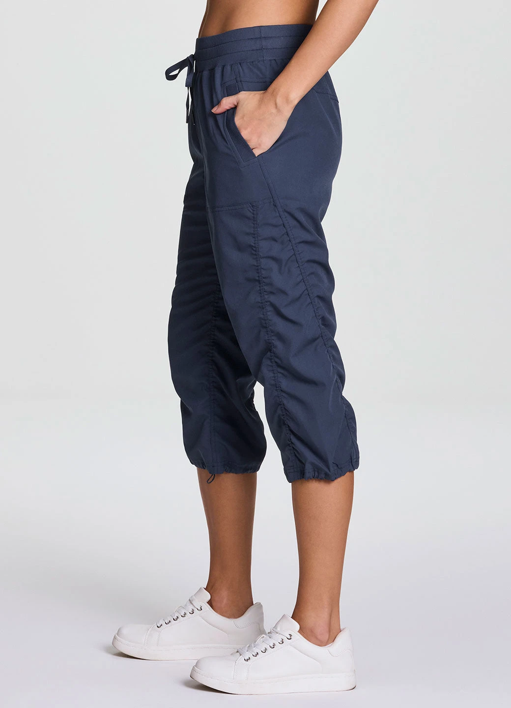 Stretch out in style with our relaxed fit Lumen Lightweight Capri Pant. Lightweight stretch woven fabric allows you to move without restriction, while moisture wicking properties help it to dry quickly to keep you dry and comfortable. Sizable pockets provide convenient on-the-go storage, and an elastic waistband and drawstrings at the waist and leg openings allow for a more customized fit. These best selling relaxed fit capri pants are just the ticket no manner what the activity. Available in extended sizes XS-3X. *Please note these capris have a looser, relaxed fit when choosing a size.