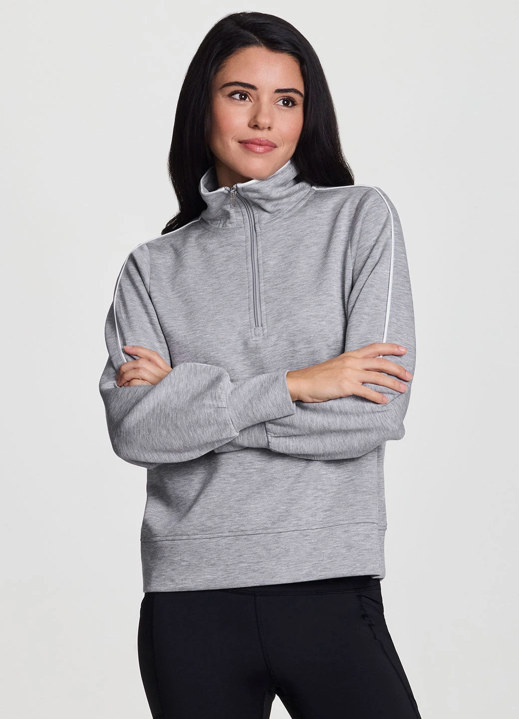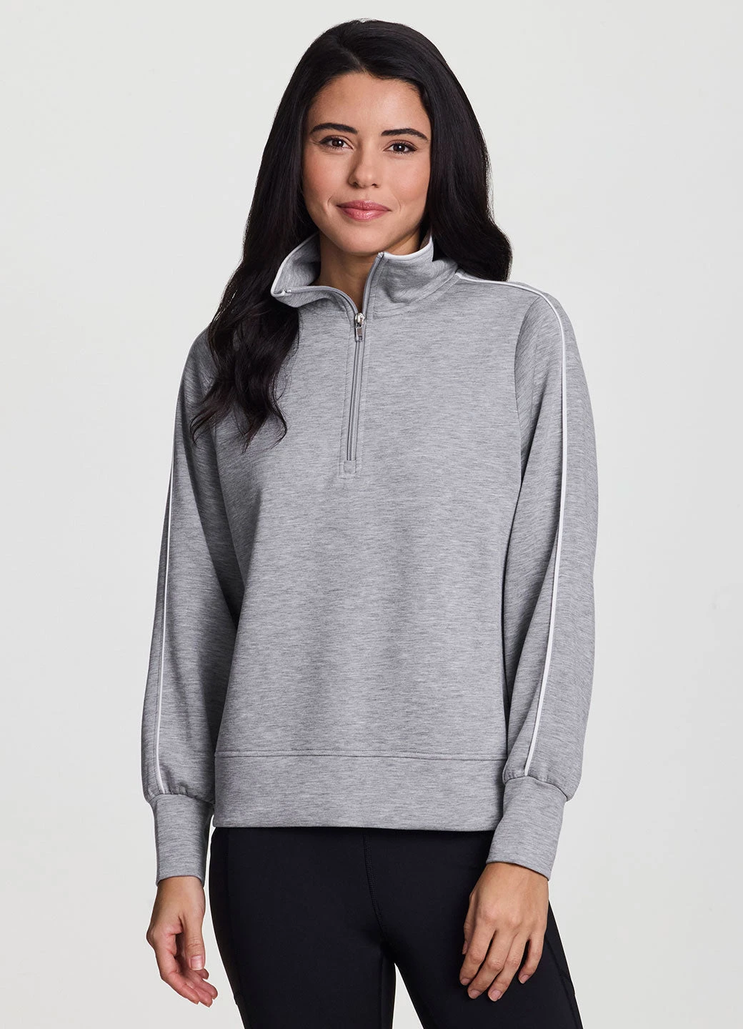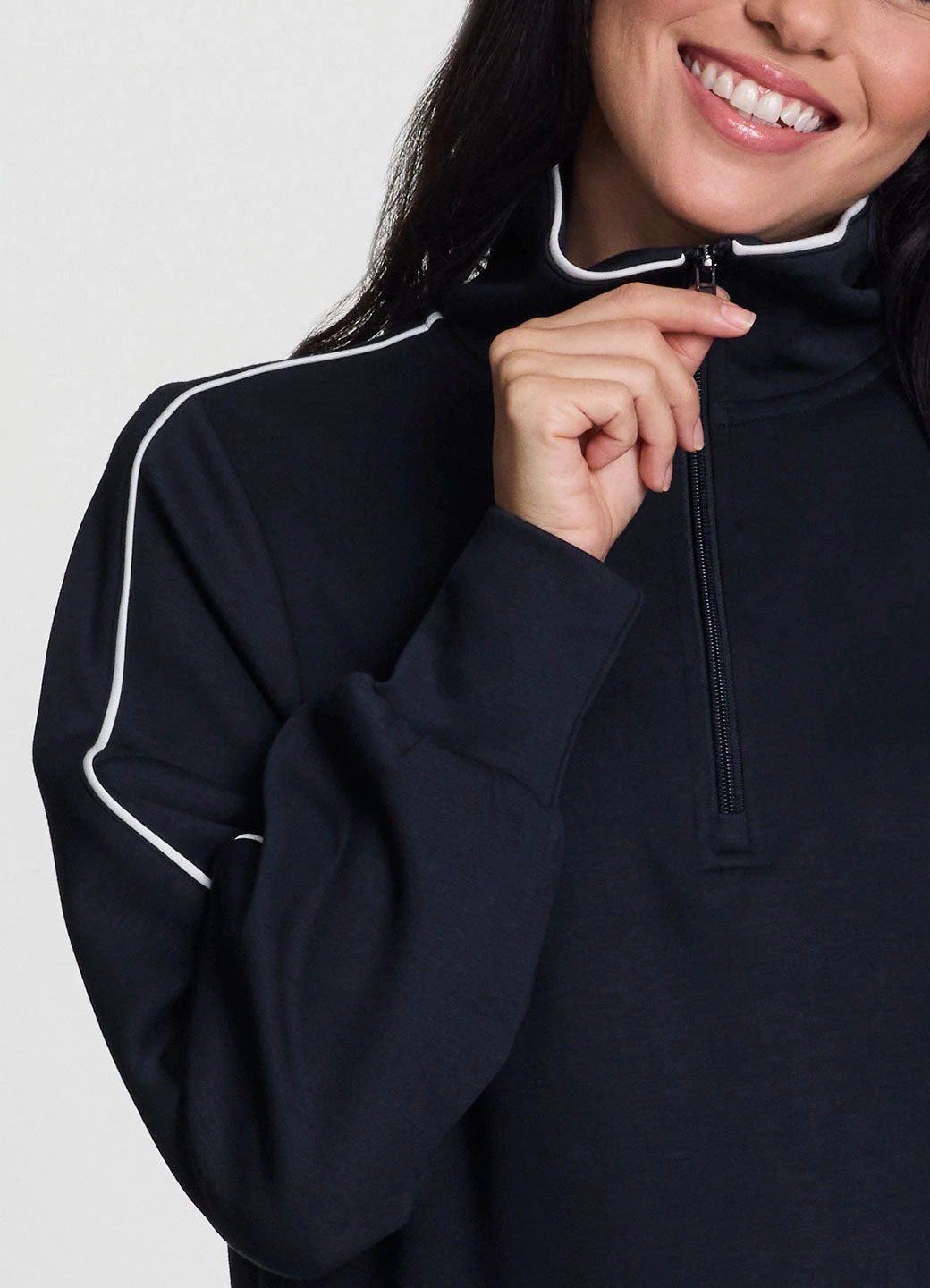 Our LuxeSoft 1/4 Zip Pullover features soft LuxeSoft fabric with sporty contrast piping that keeps you on trend, while a partial zip mock neck design allows for easy layering and offers customized styling options. Deep wrist cuffs enable optimal sleeve scrunching, and a regular length plus transitional weight fabric allows for effortless styling throughout the seasons.