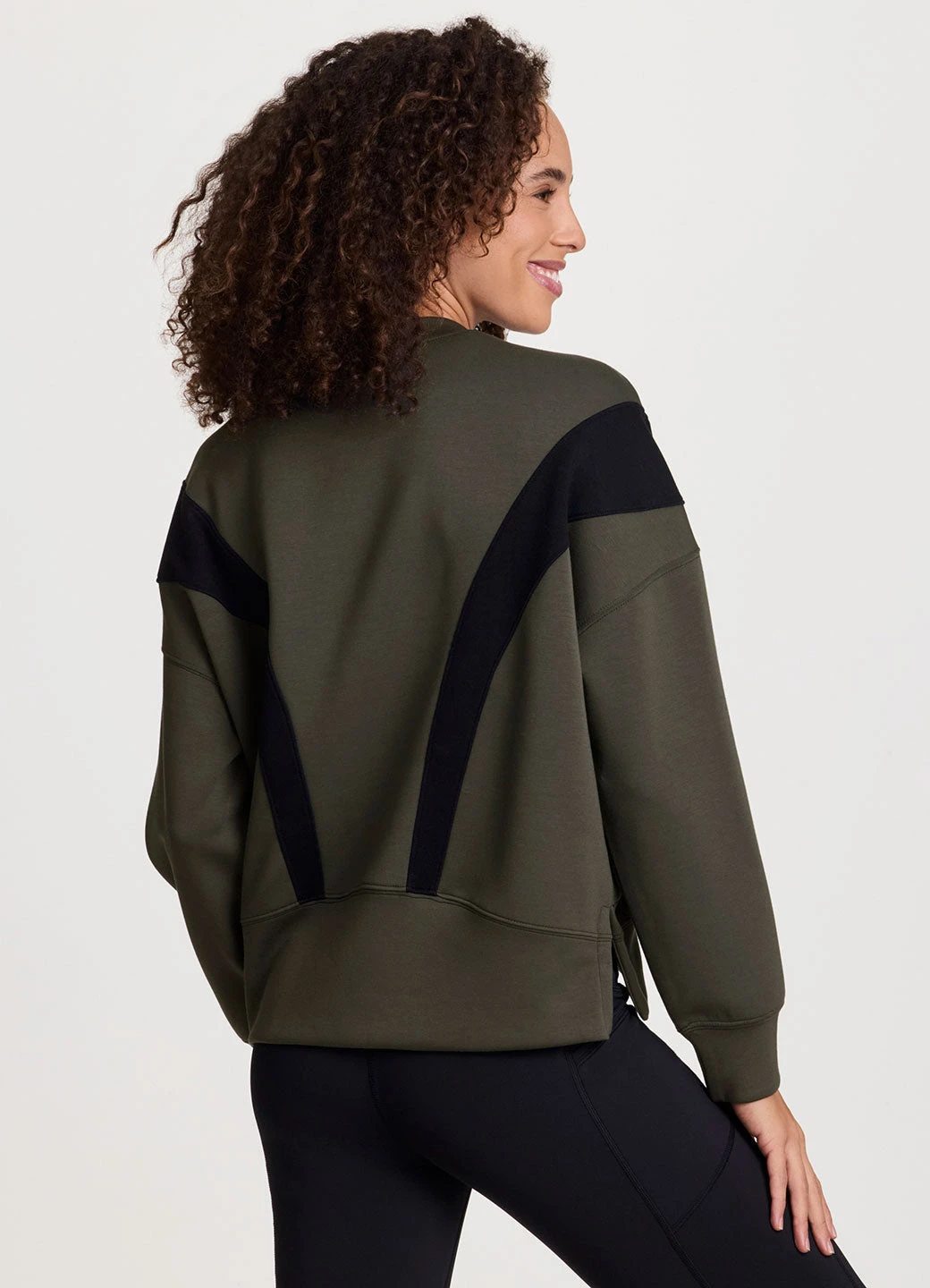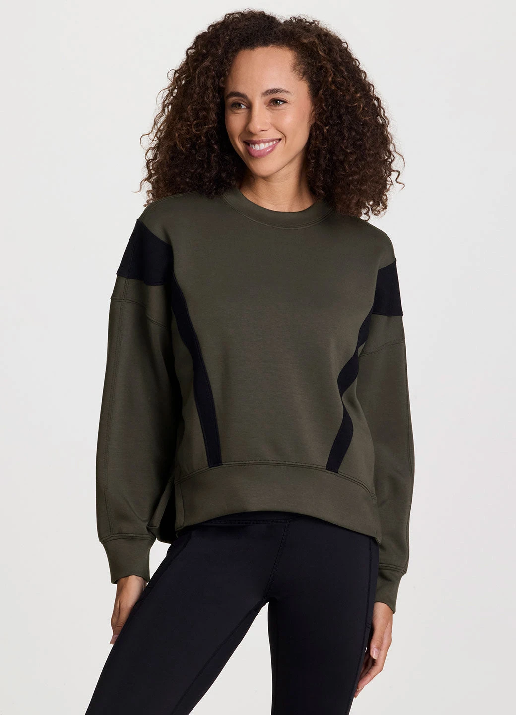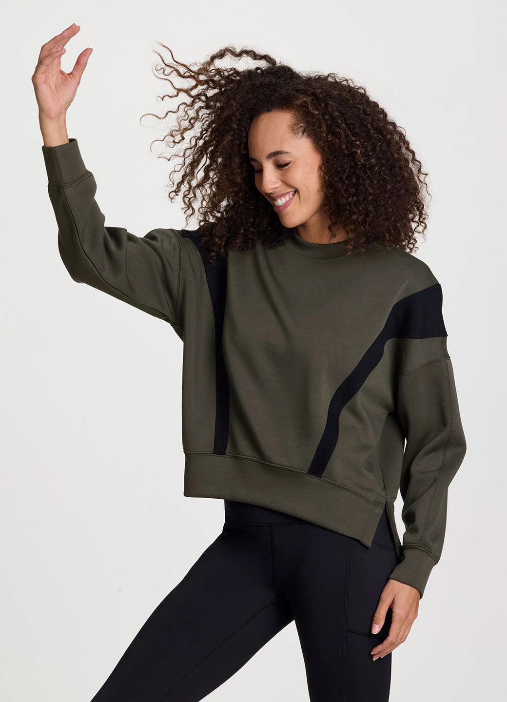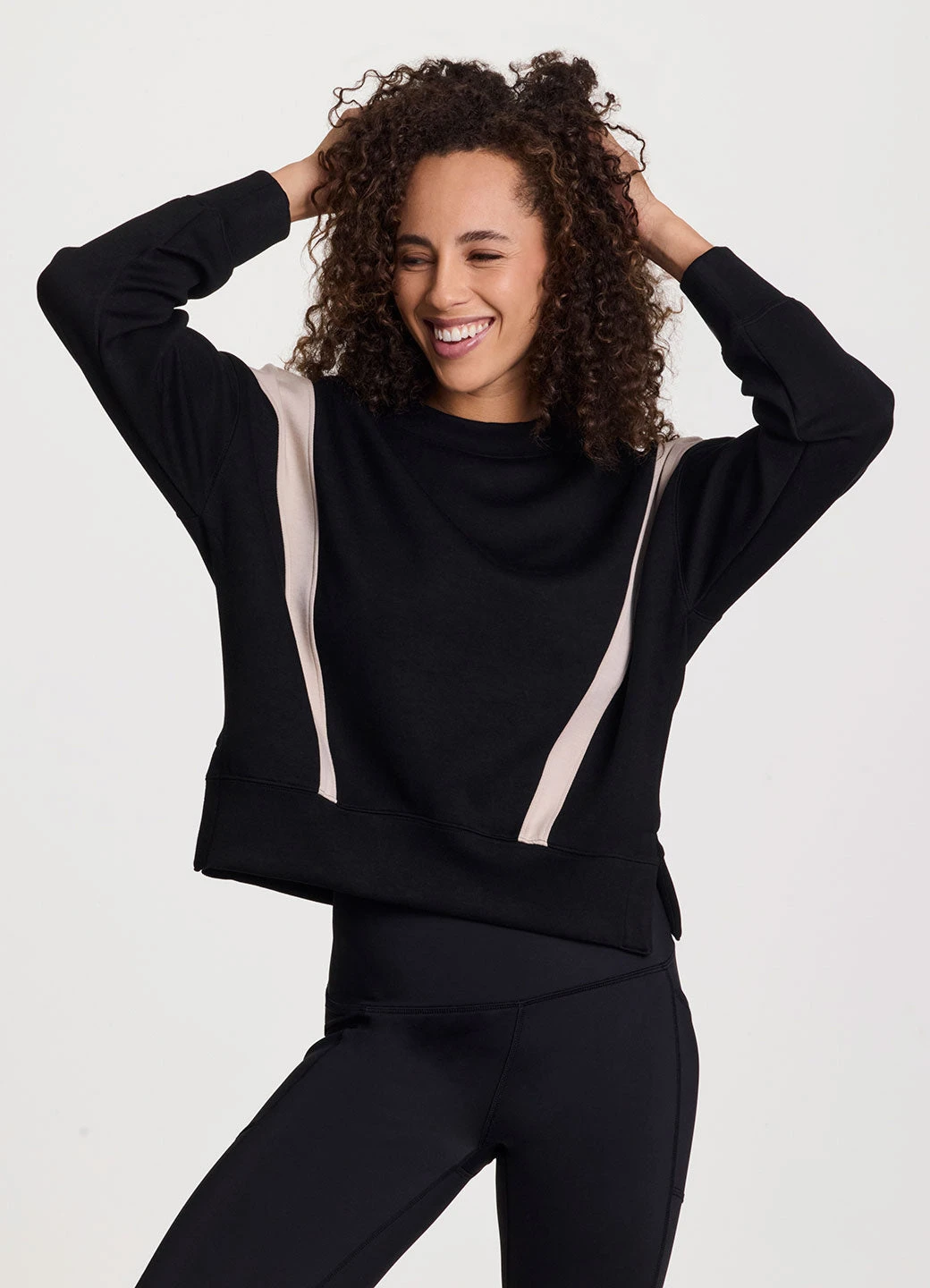 Designed for your workouts, hangouts and more, Our LuxeSoft Colorblock Sweatshirt features a slightly cropped length, buttery soft LuxeSoft fabric and trendy colorblock seaming detail to ensure easy styling and transitional wear. A breathable fit and side vents at the hem allow for easy layering, while neutral colors and a classic crew neckline pair perfectly with your workout clothes or your favorite pair of jeans.