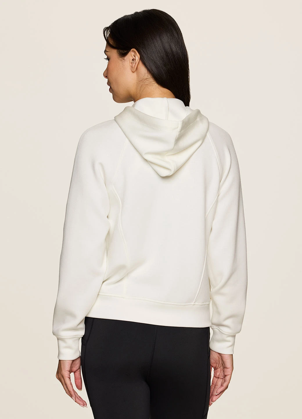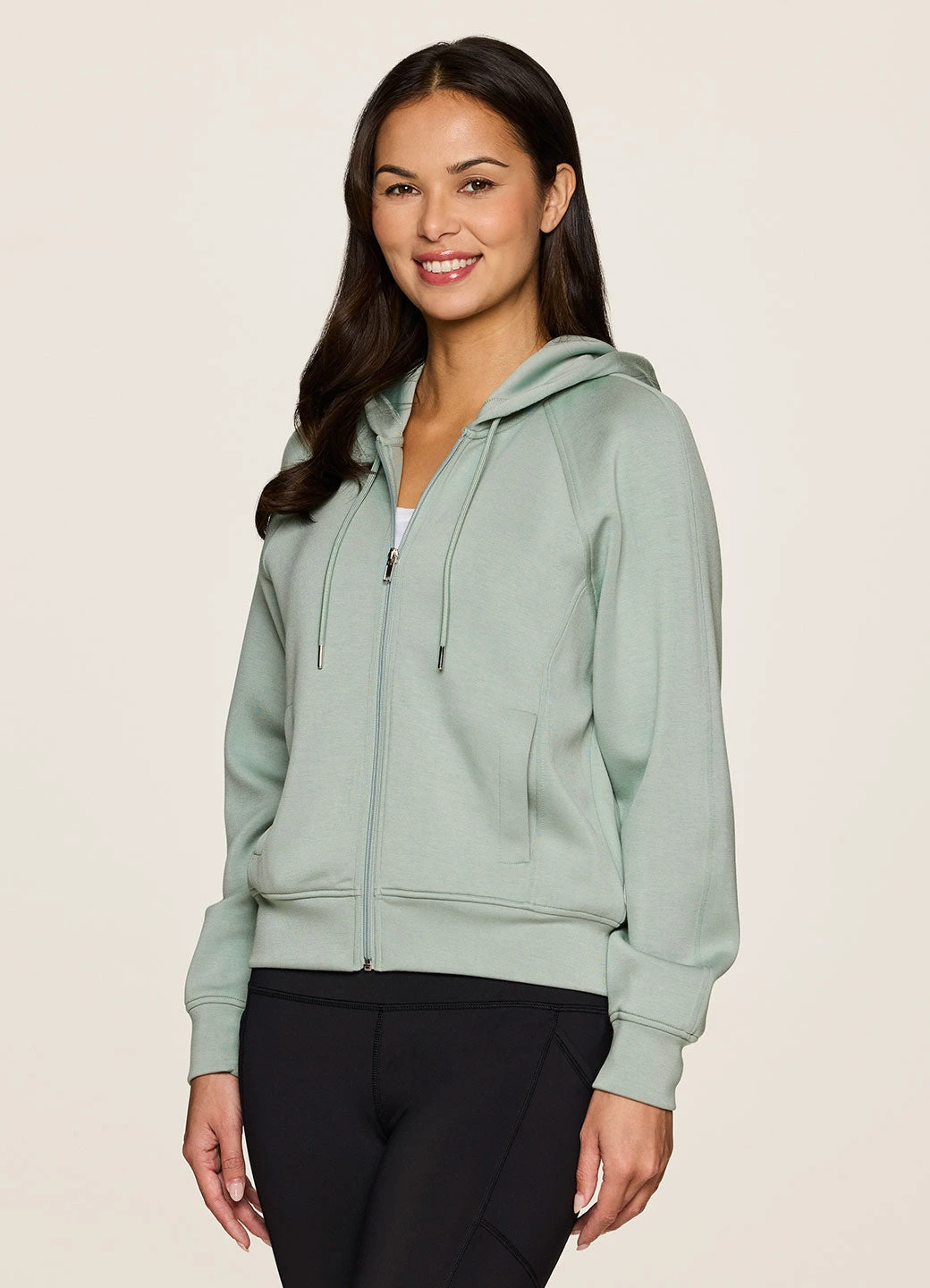 Relax and reset in our LuxeSoft Hoodie Jacket. Super soft, transitional-weight LuxeSoft fabric with seaming detail keeps you on trend and feeling great from the yoga studio and gym to dog walks, school pick-ups and more. A breathable relaxed fit combines with a full zip closure, side pockets, dropped shoulders for long lasting comfort, and wrist cuffs that allow for optimal sleeve scrunching for a cozy fit. Boasting a timeless design, convenient function and luxurious fabric great for year-round wear, this elevated zip up sweatshirt jacket brings style to any athleisure wardrobe.