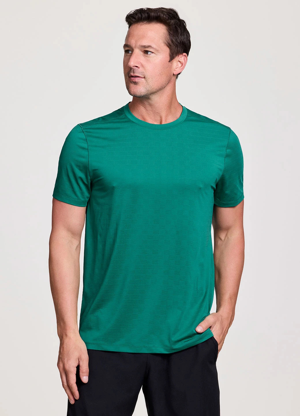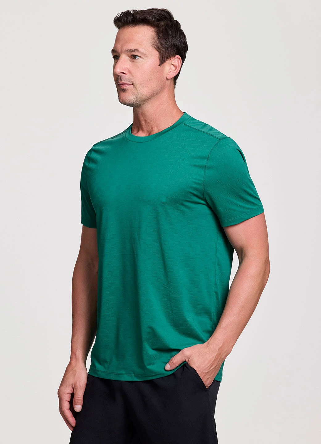 Crafted from our signature X-Dri fabric, our Making Moves Workout Tee dries quickly to keep you cool and comfortable. The lightweight stretchy jacquard fabric features a subtle tonal checkerboard texture that adds a touch of style while offering enhanced breathability. Complete with a classic short sleeve crewneck design, and regular fit for an elevated performance tee perfect for any lifestyle.