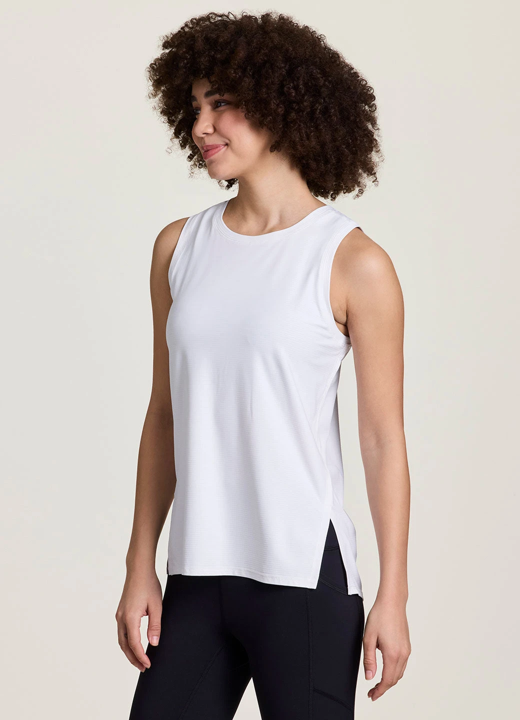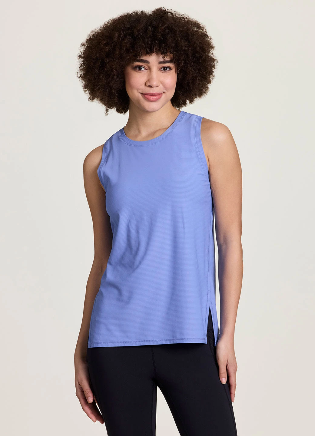 Stay cool and comfortable during your workouts and beyond with our Move It Everyday Tank. Crafted from breathable jacquard stripe fabric that’s lightweight and designed to dry quickly, this sleeveless workout top features side vent slits for enhanced air flow plus a relaxed fit for easy wearability from studio to street. Complete with a regular length that has a longer hemline in back and a classic crewneck design, this versatile tank top offers the coverage and style you’re looking for.