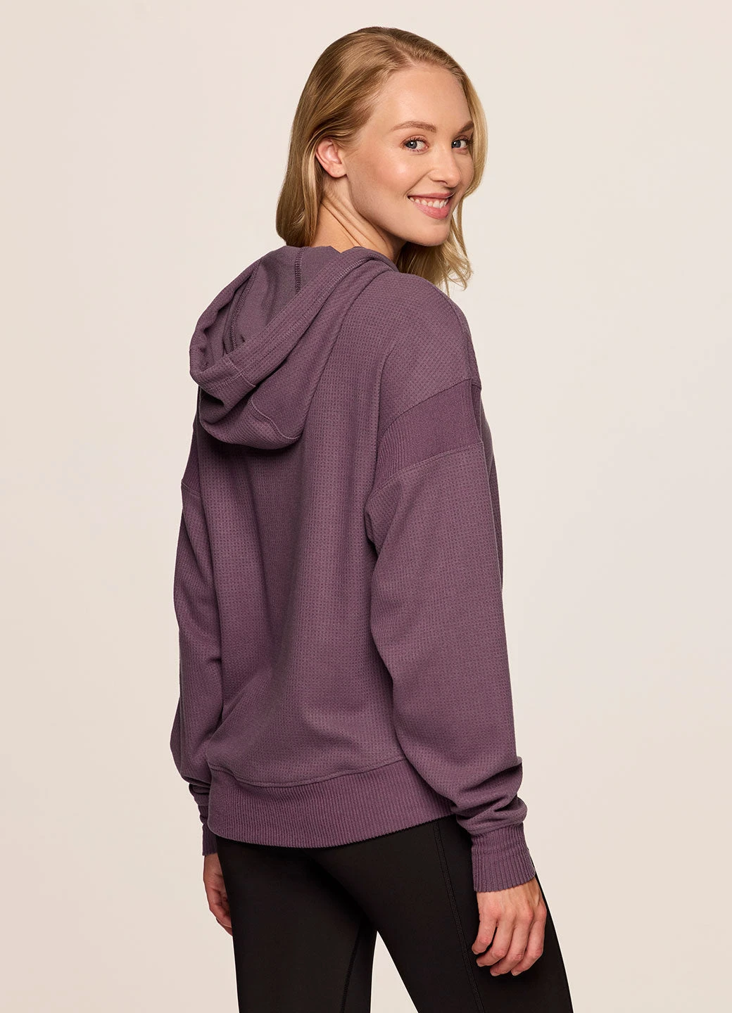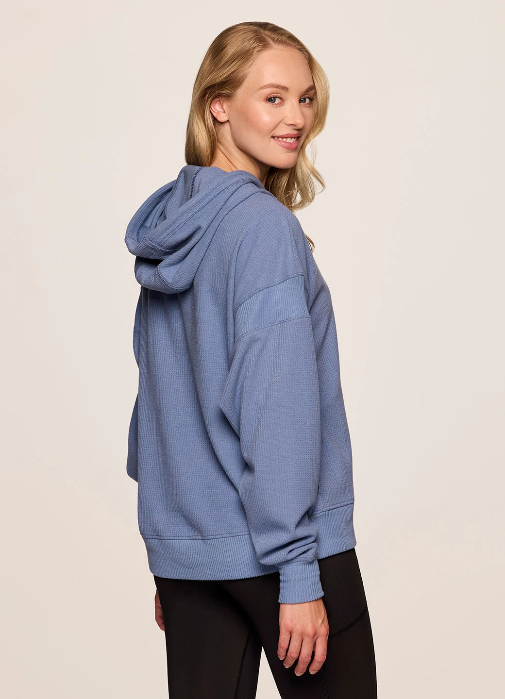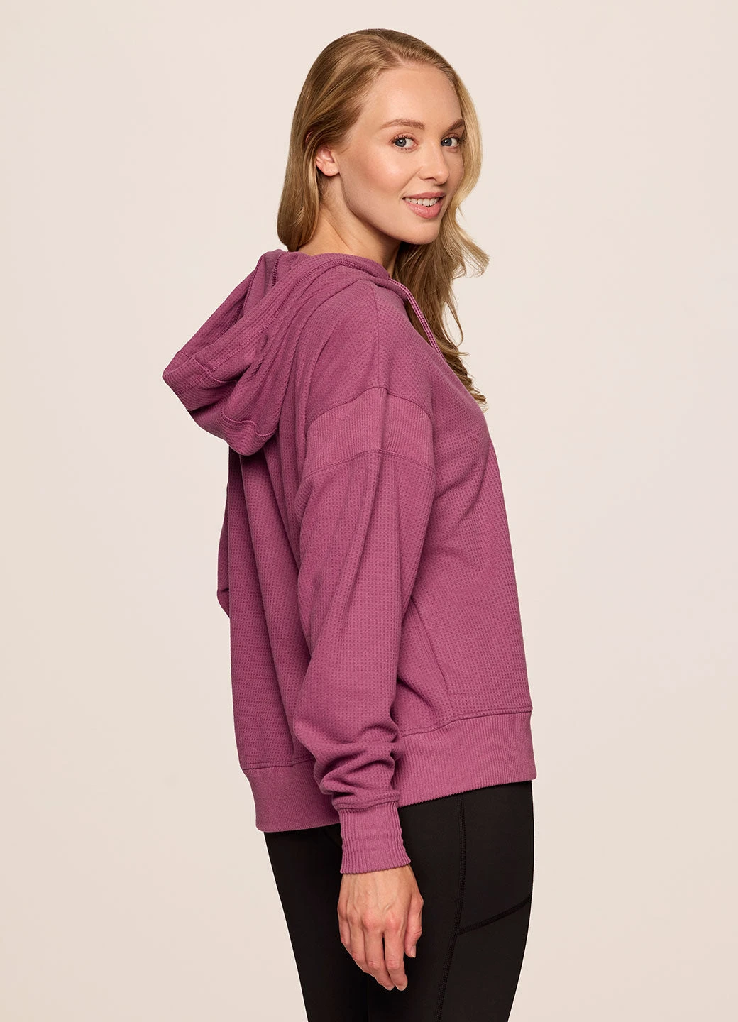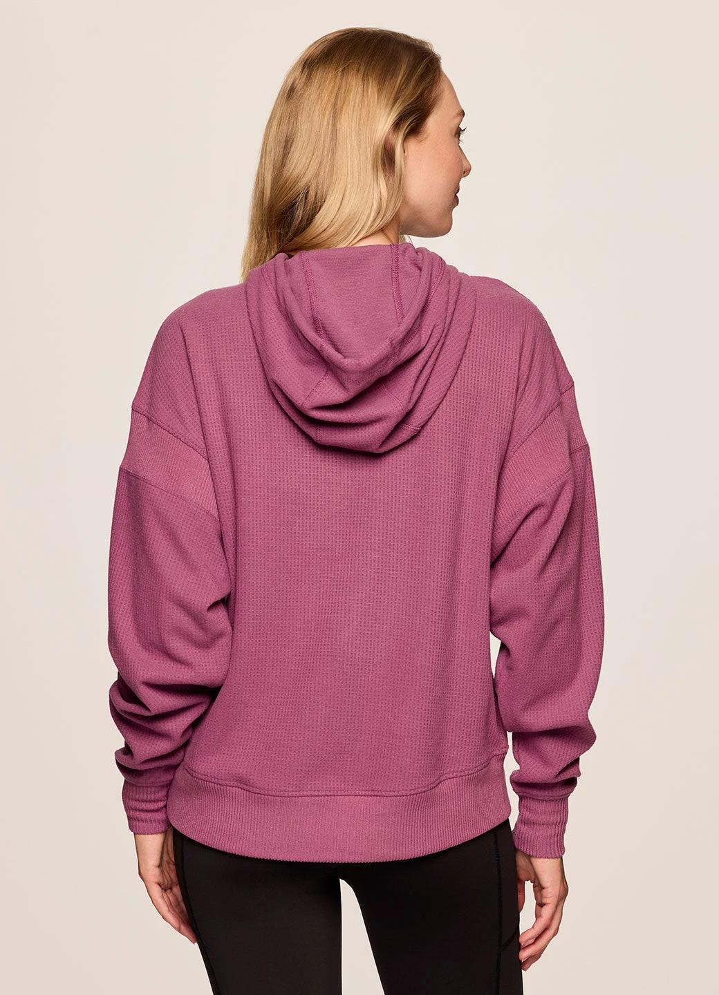 Constructed from lightweight, silky soft waffle fabric, you’ll never want to take our Off Days Relaxed Waffle Knit Hoodie off! Pockets offer functional storage, and an attached hood with adjustable drawstrings helps protect you from the elements. A breathable fit that’s perfect for layering completes this transitional long sleeve top for a layering piece you can wear anywhere, any time of year.