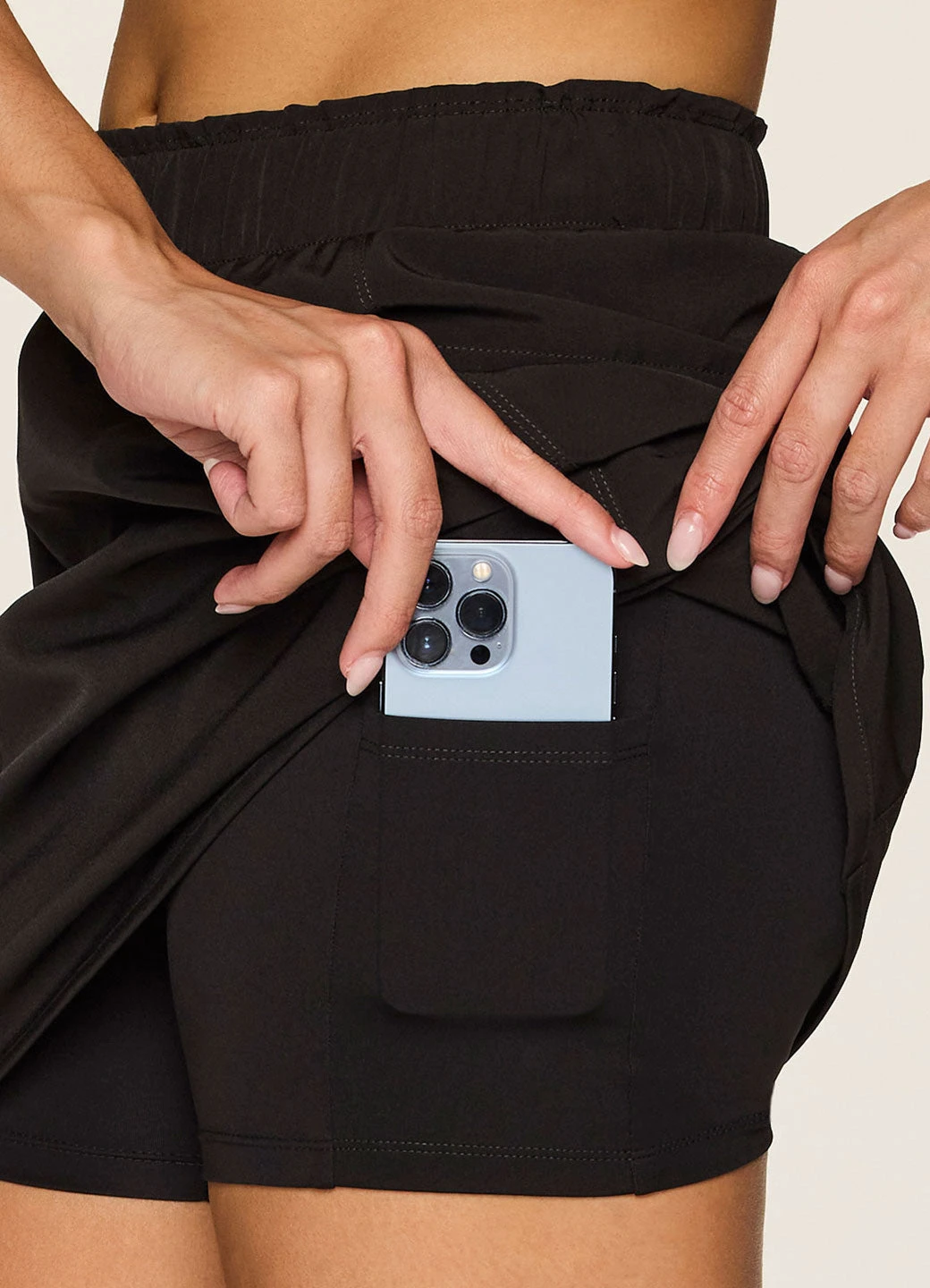 A shorter take on our On Course Skort, you can do it all in our On Course 16″ Skort. Quick drying stretch woven fabric is versatile enough to take from the hiking or running trails to the beach, pickleball courts or brunch with friends. A flattering flat-front elastic waistband combines with attached biker shorts underneath for added support and coverage while ensuring a secure fit, while side pockets add the functionality you’re looking for in this versatile active skort.