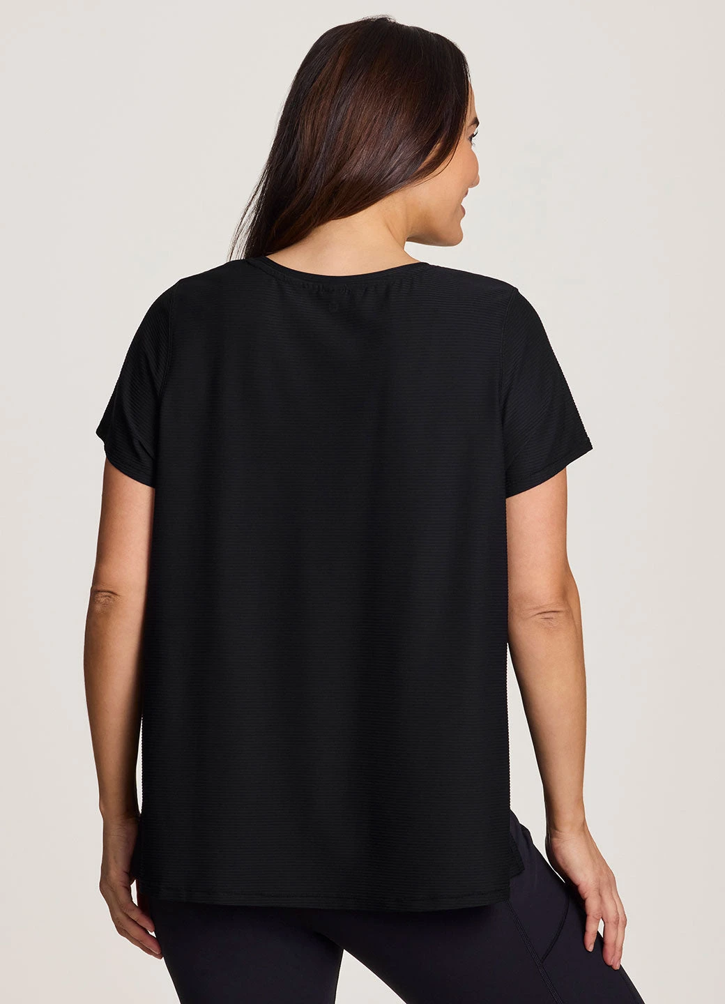Crafted with quick drying mesh fabric that helps wick moisture and keep you cooler, our Everyday Favorite Tee was made to help enhance your next workout. A slightly longer length in back offers additional coverage, while the side slits, relaxed fit and shadow stripe closed mesh fabric promote air flow for breathable comfort.