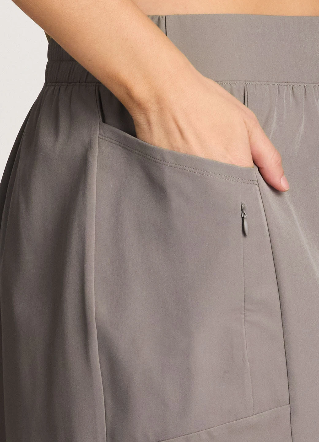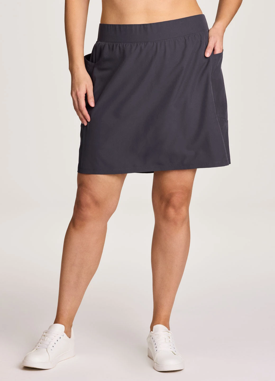 The Plus Prime Perfect Weekend Skort is an essential for your warm weather wardrobe. The attached bike short underneath keeps you covered and supported and includes a compression pocket that can fit most cell phones. Two full-sized side pockets provide convenient storage for things like your phone and keys, and an additional smaller zipper pocket offers more a more secure option for smaller items. A wide, elastic waist band allows for a perfect fit and lays flat for a streamlined look. Quick drying woven fabric keeps you cool and comfortable. Perfect for everything from golf to brunch, this stylish skort will be your favorite new piece in your athleisure wardrobe!