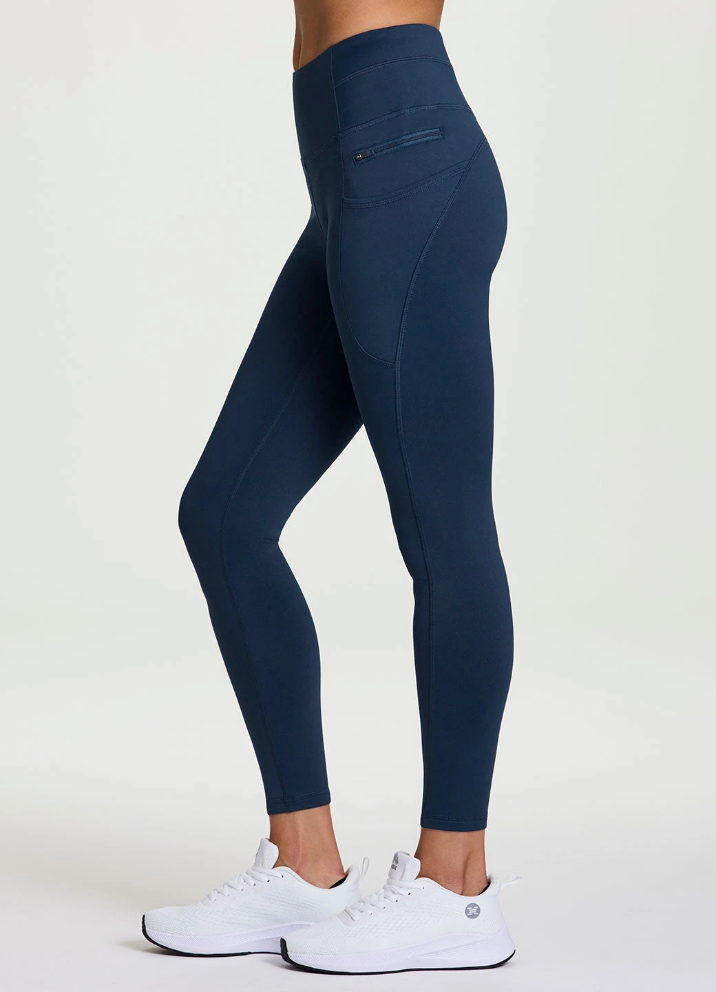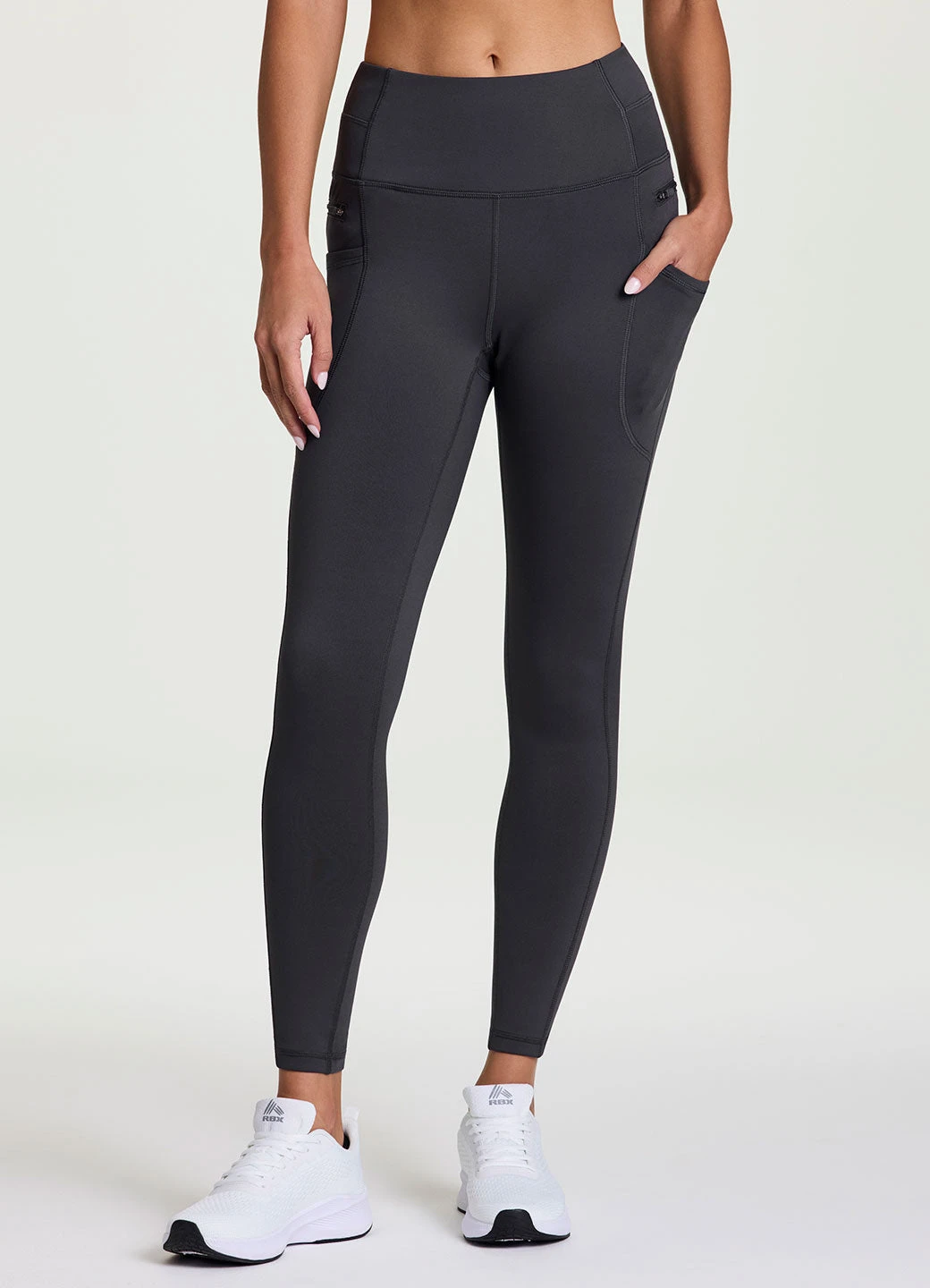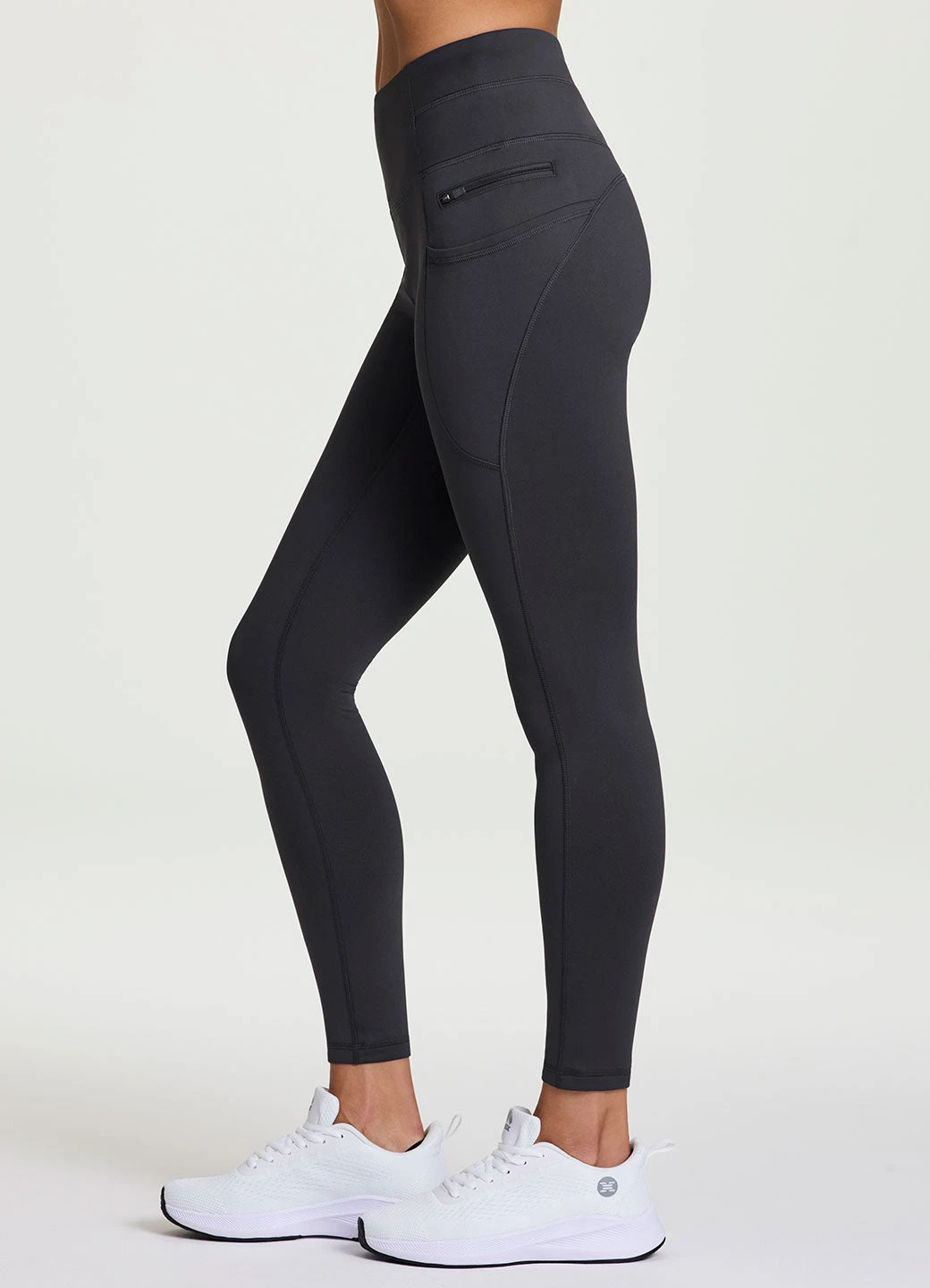 Never miss out on a good workout because of the cold with our Prime Hit The Road Fleece Legging. These full length leggings are made with moisture wicking fabric and super soft fleece lining to keep you warm and dry, without using traditional heavy-weight fabrics. Two zipper pockets hold your valuables securely, while open tech pockets on each side are perfect to tuck your phone or hands in to. Finished with a supportive high waistband and fitted silhouette, these versatile tights are functional and flattering for everyone.