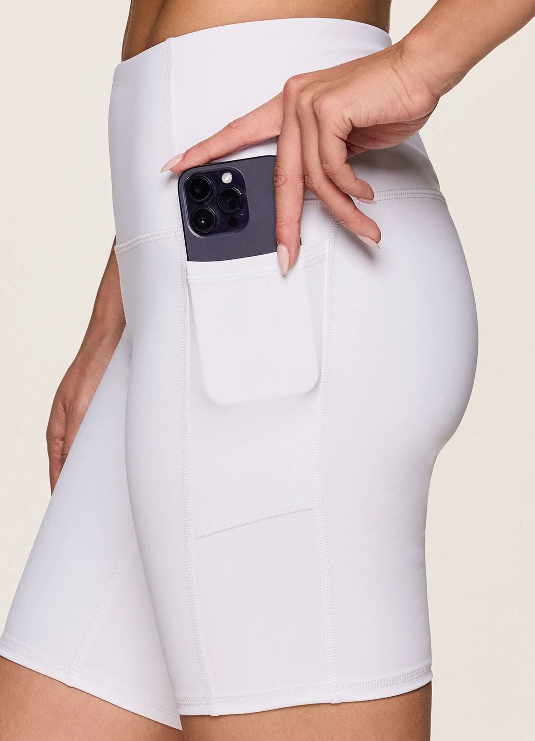Move with confidence in our Prime Tech Flex Ultra Hold 7″ Bike Short. Made for high impact workouts at the gym, studio or outdoors, these squat proof athletic shorts offer total coverage while bending, squatting and stretching. Two side pockets provide convenient storage options for your cellphone, keys or other smaller valuables. Constructed with moisture-wicking fabric with Tech Flex technology, they are designed to move with you through any workout while keeping you dry and comfortable. Complete with a supportive high waistband, these bike shorts are flattering for every figure.