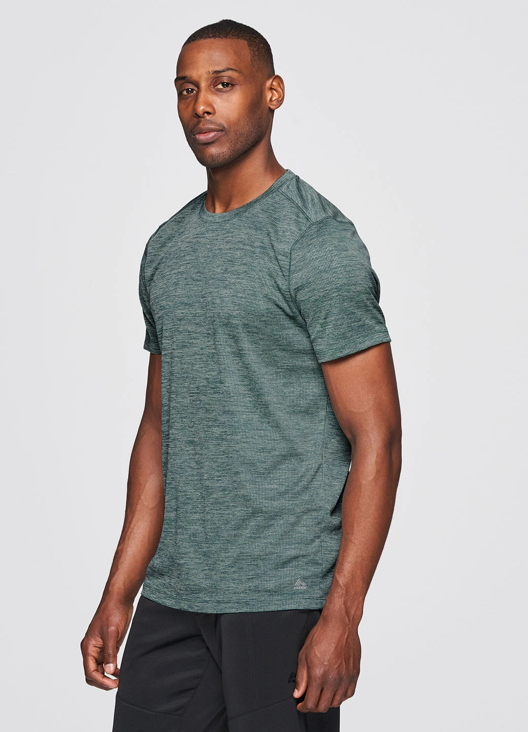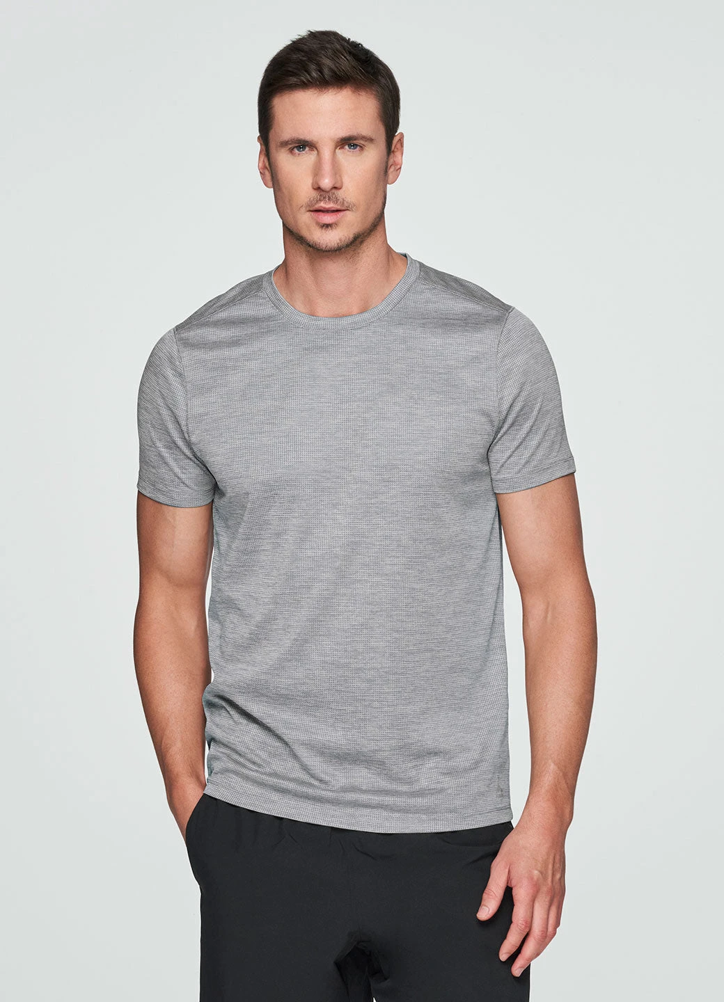 Enhance your active wardrobe with our Prime Waffle Workout Tee. This athletic tee is constructed from a lightweight, breathable two-tone waffle fabric made with X-Dri technology to help wick moisture away and keep you dry. The classic crewneck, short sleeve design and regular fit is perfect for layering and help enhance your next run, hike or workout.