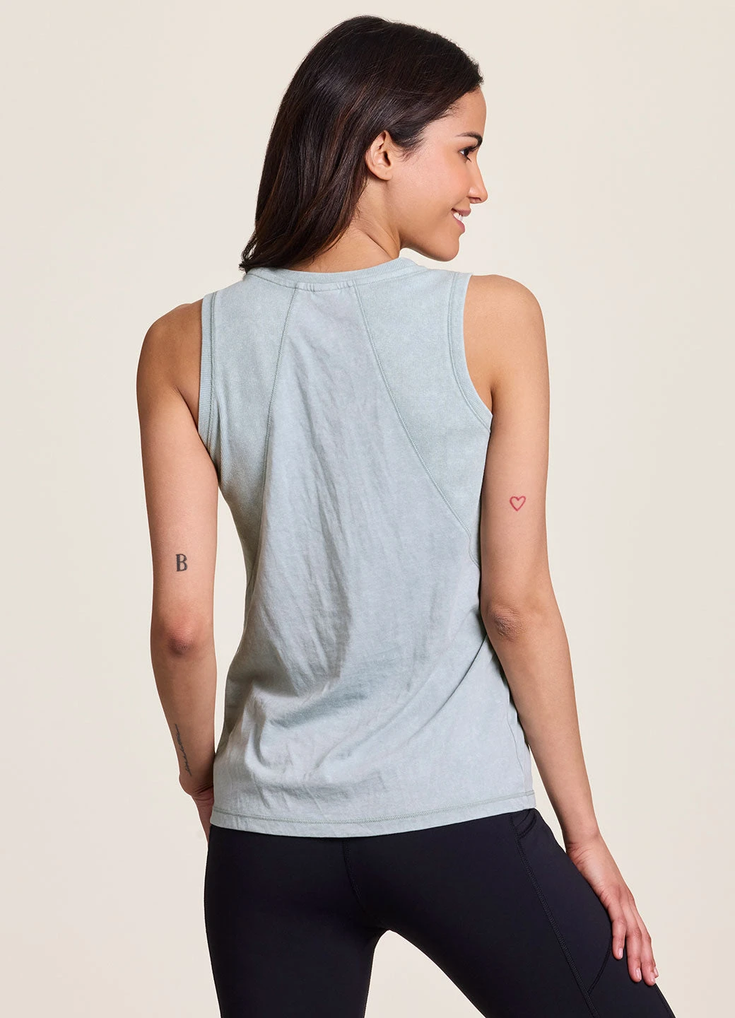 Made from a soft, lightweight cotton blend fabric with a stylish mineral washed effect, our Seascape Back Ribbed Tank effortlessly pairs with your sports bra at the gym or with your favorite denim jacket before heading out to brunch with friends. Finished with seaming detail plus ribbed trim and back panels for a sporty look, it’s the elevated crewneck tank top your athleisure wardrobe is missing.