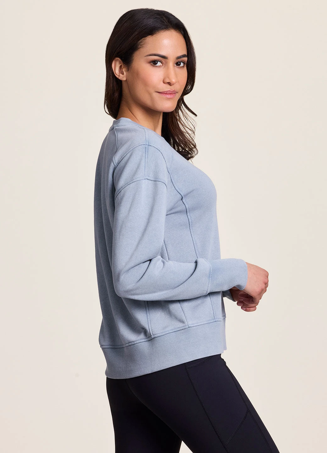 Indulge in the timeless athleisure comfort of our Seascape Relaxed Pullover, made from a soft, ultra lightweight cotton french terry fabric with a chic mineral washed effect. Complete with a stretch ribbed banded hem, wrist cuffs and dropped shoulder seaming for sporty look and feel, it’s the all-season crewneck sweatshirt you can style from the yoga studio to lunch with friends.