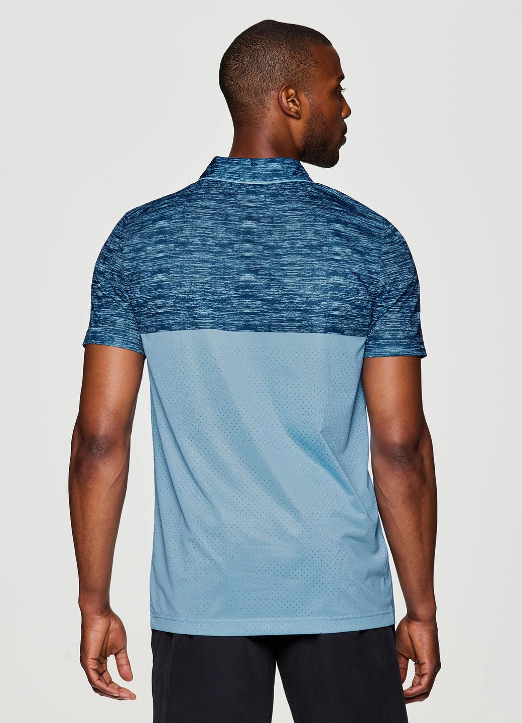 Keep cool and comfortable on the golf course in our Stay On Course Closed Mesh Polo. This polo-style performance shirt features a traditional short sleeve design with a button-up, collared neckline, making it perfect for golf, workouts or everyday casual wear. It has colorblock design with a striated stretch jersey fabric on top and breathable closed mesh body that’s made to dry quickly and help keep you cool. Complete with an easy, body skimming fit that offers breezy comfort throughout wear.
