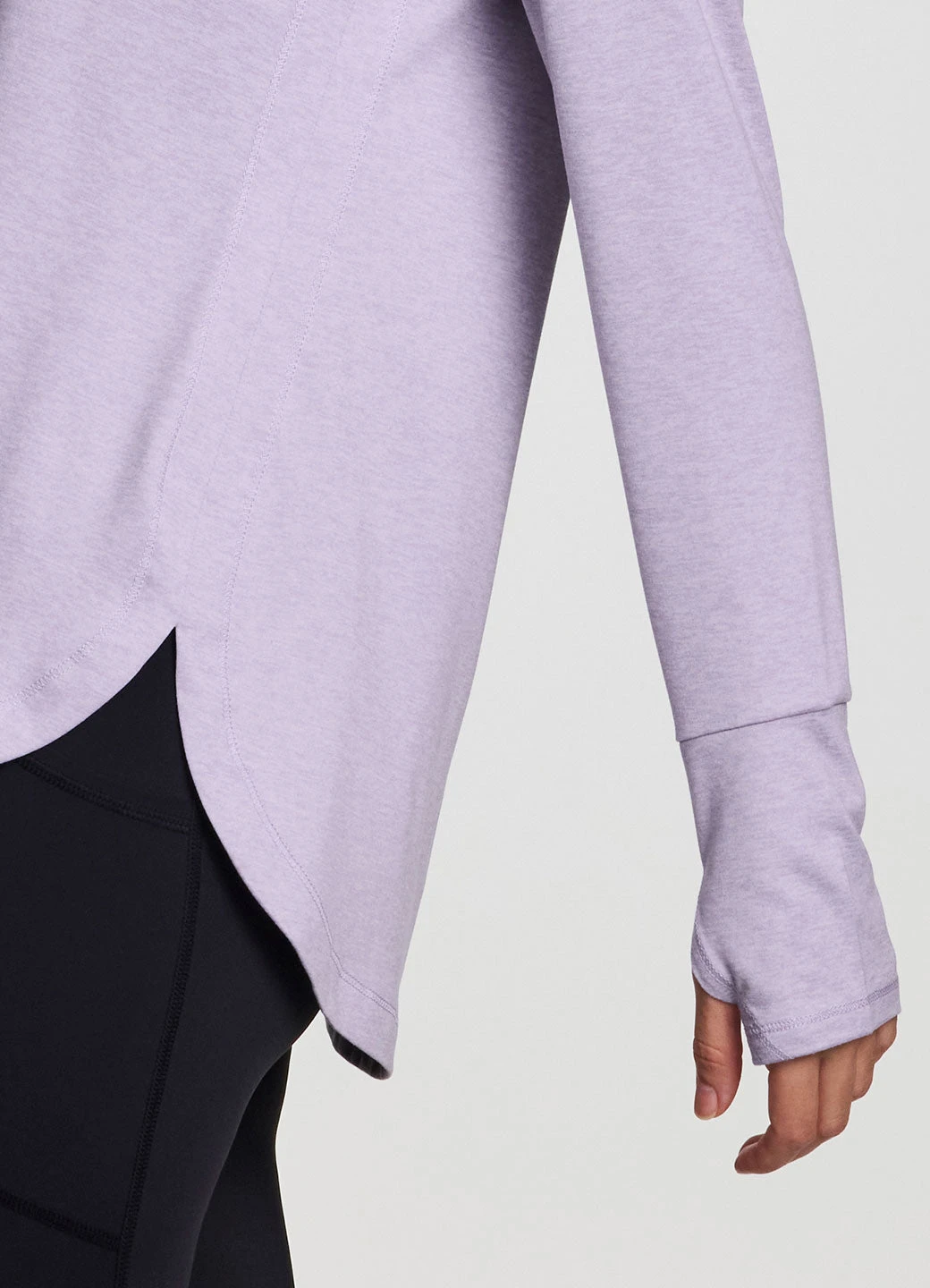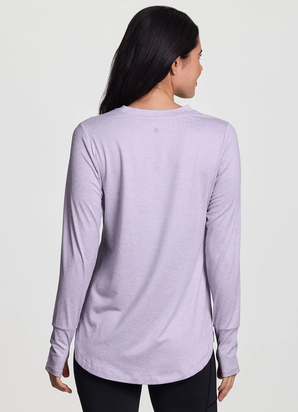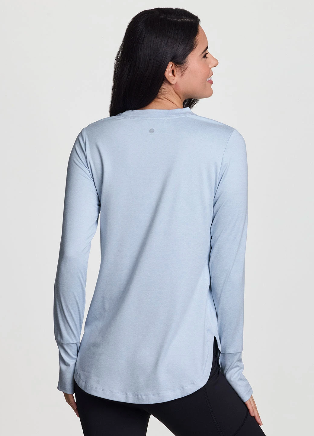 Practice your poses in our Studio Practice Long Sleeve Tunic Tee. With its longer tunic-length design and side slits, this long sleeve t-shirt fits comfortably and provides coverage in the areas you want it most. The super soft, stretchy peached fabric feels smooth and drapes your body for a flattering and comfortable fit. Finished with thumbholes to help keep sleeves in place for a full range of distraction-free movement, you can wear this training top to any workout.