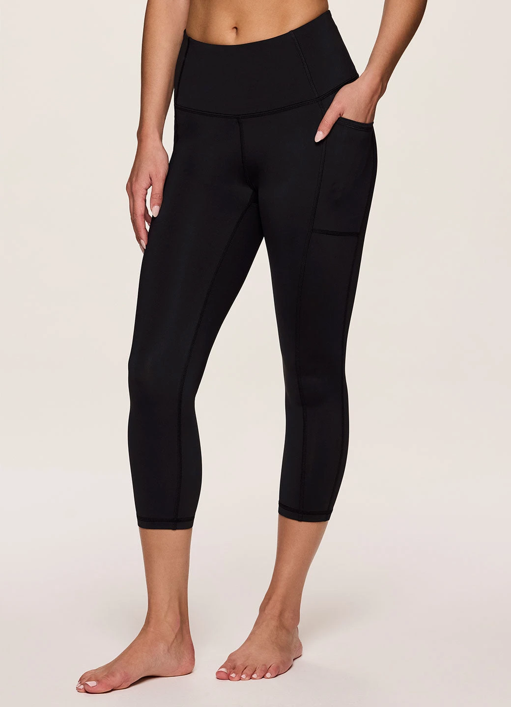 Stretch with confidence in our Tech Flex Ultra Hold Capri legging. Made for high impact workouts at the gym, studio or outdoors, these squat proof leggings offer full coverage while you move, bend and squat. Two pockets provide convenient storage options for your cell phone and other valuables. Constructed with opaque, moisture-wicking fabric, these tights are designed to move with you while keeping you dry and providing support and secure compression. Complete with a comfortable yet supportive seamless high waistband, these flattering capris are made for everyone.