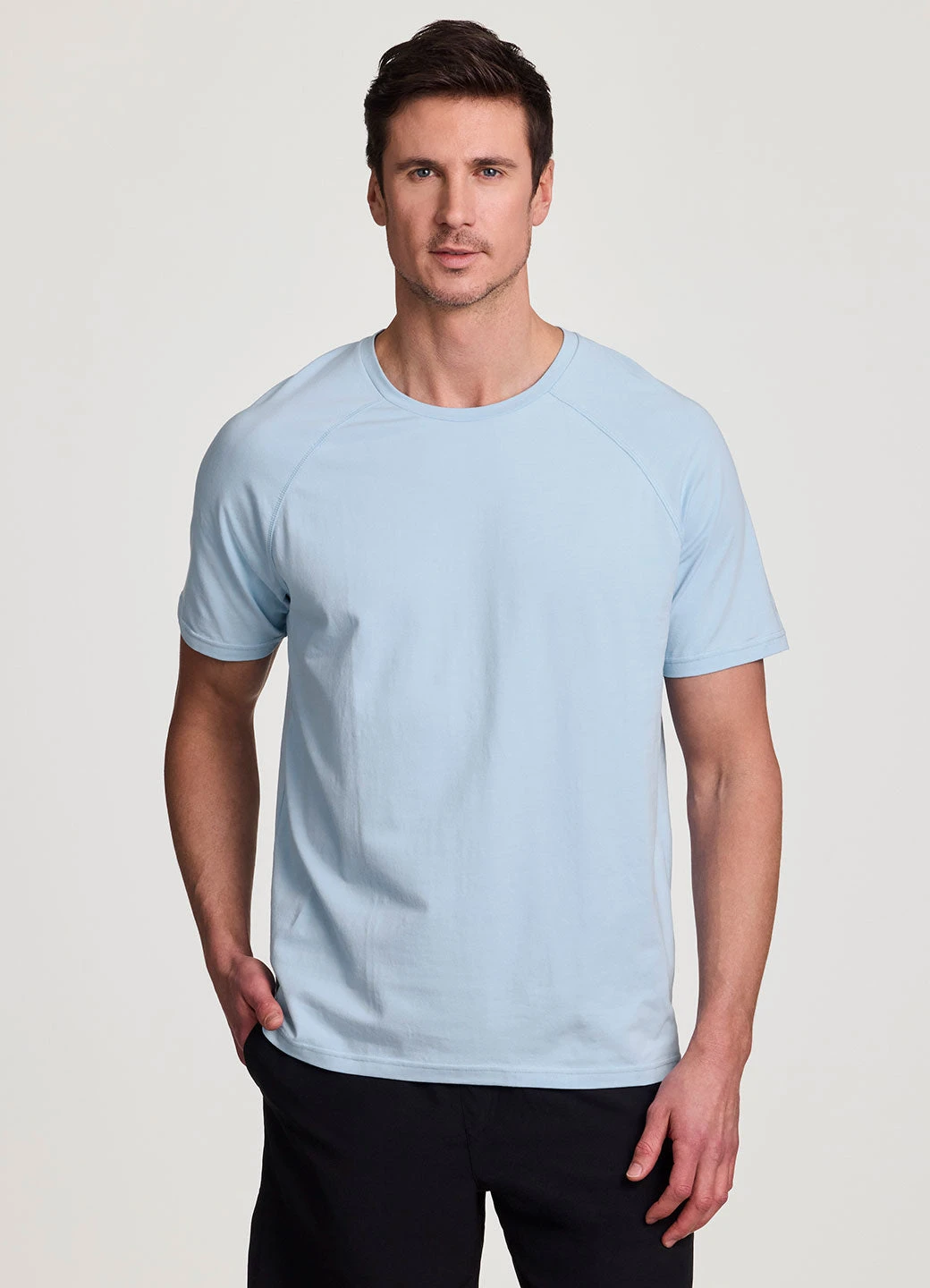 Our Venture Workout Tee is crafted from a soft blend of 95% cotton and 5% spandex, providing both comfort and stretch for a timeless t-shirt you can wear anywhere. With a classic crewneck, short sleeve design finished with raglan style sleeves, hem slits and a slightly longer hemline in back, this breathable shirt for men is comfortable, versatile and easy to style from the gym to the office.