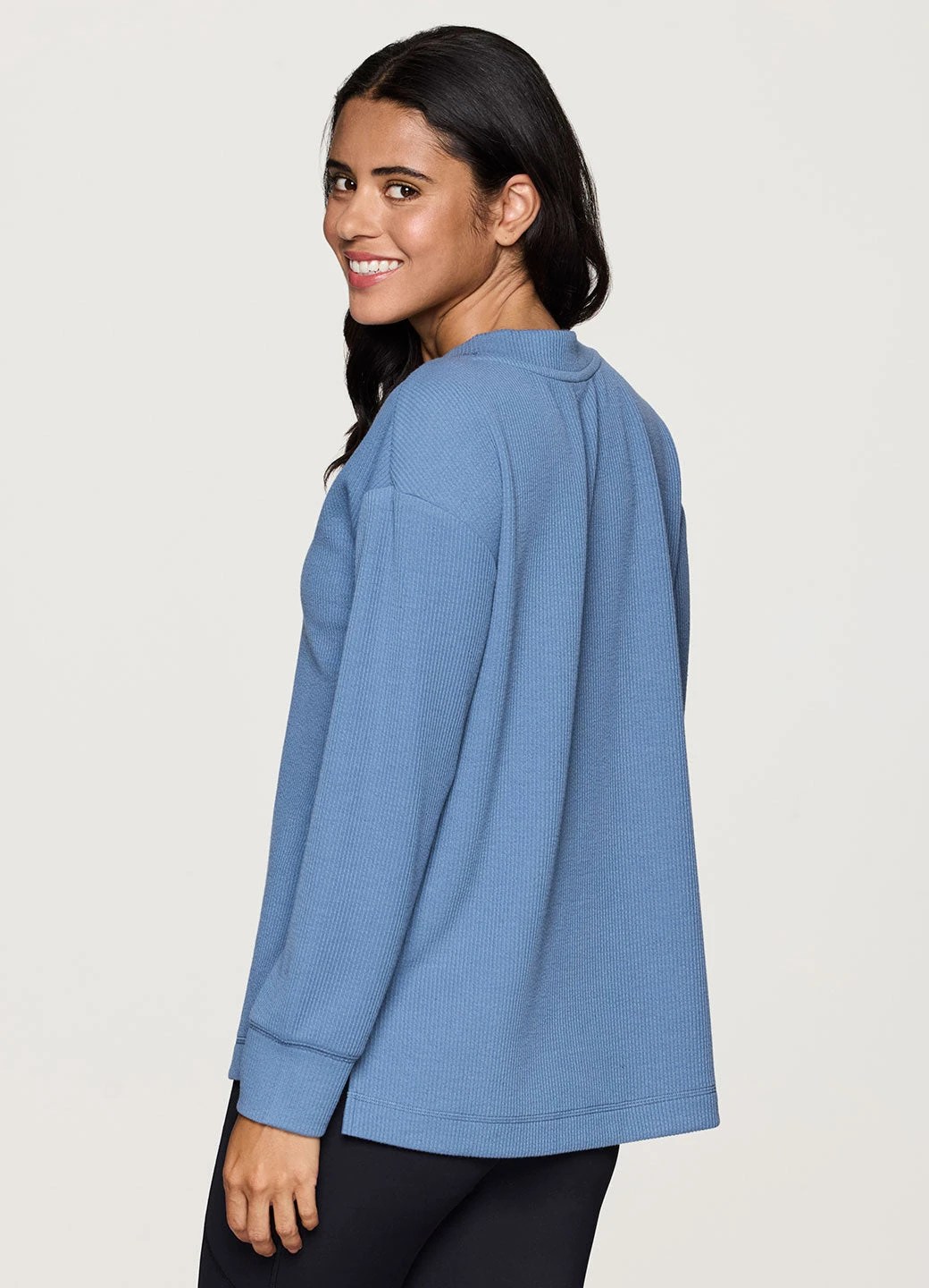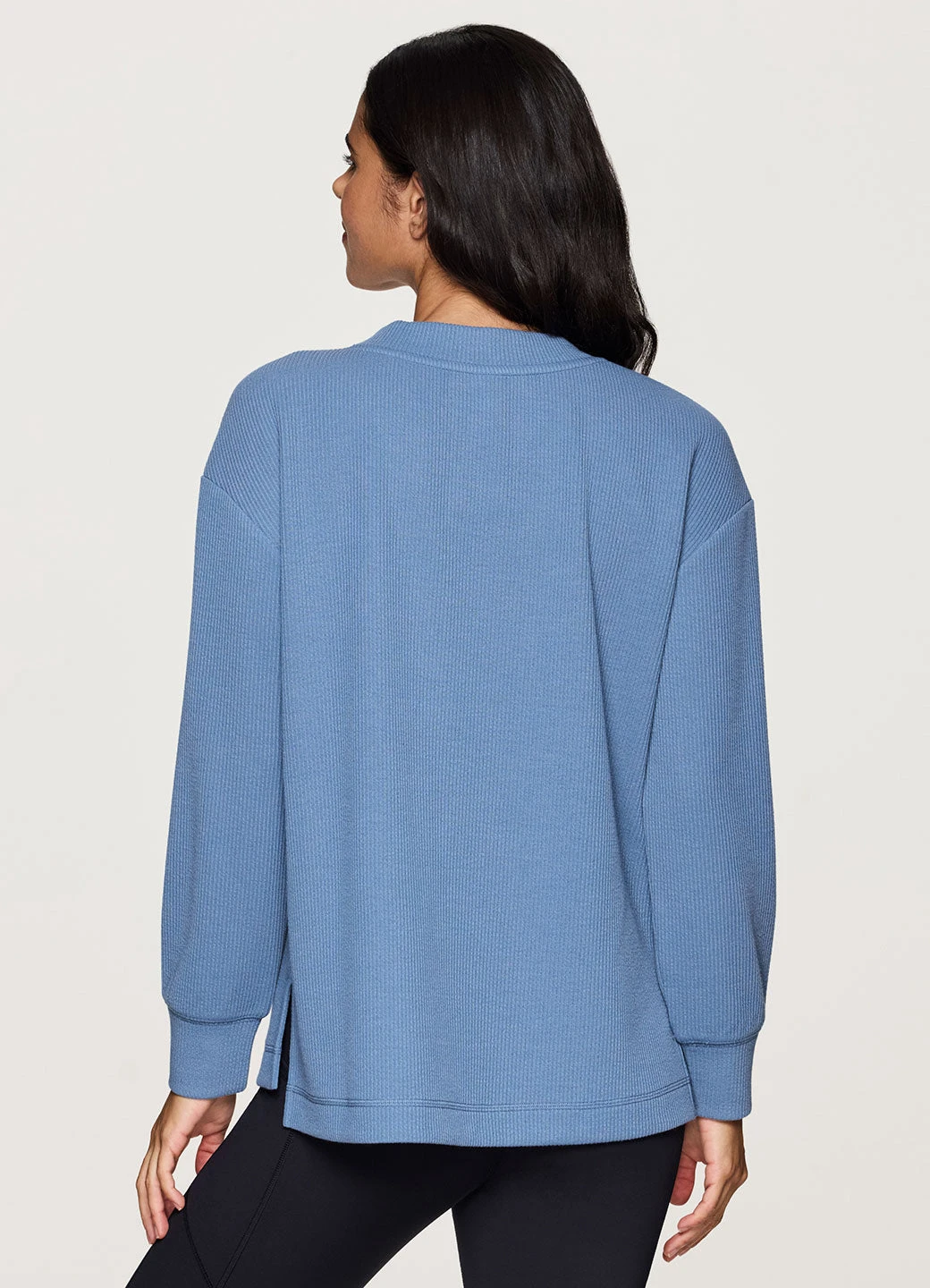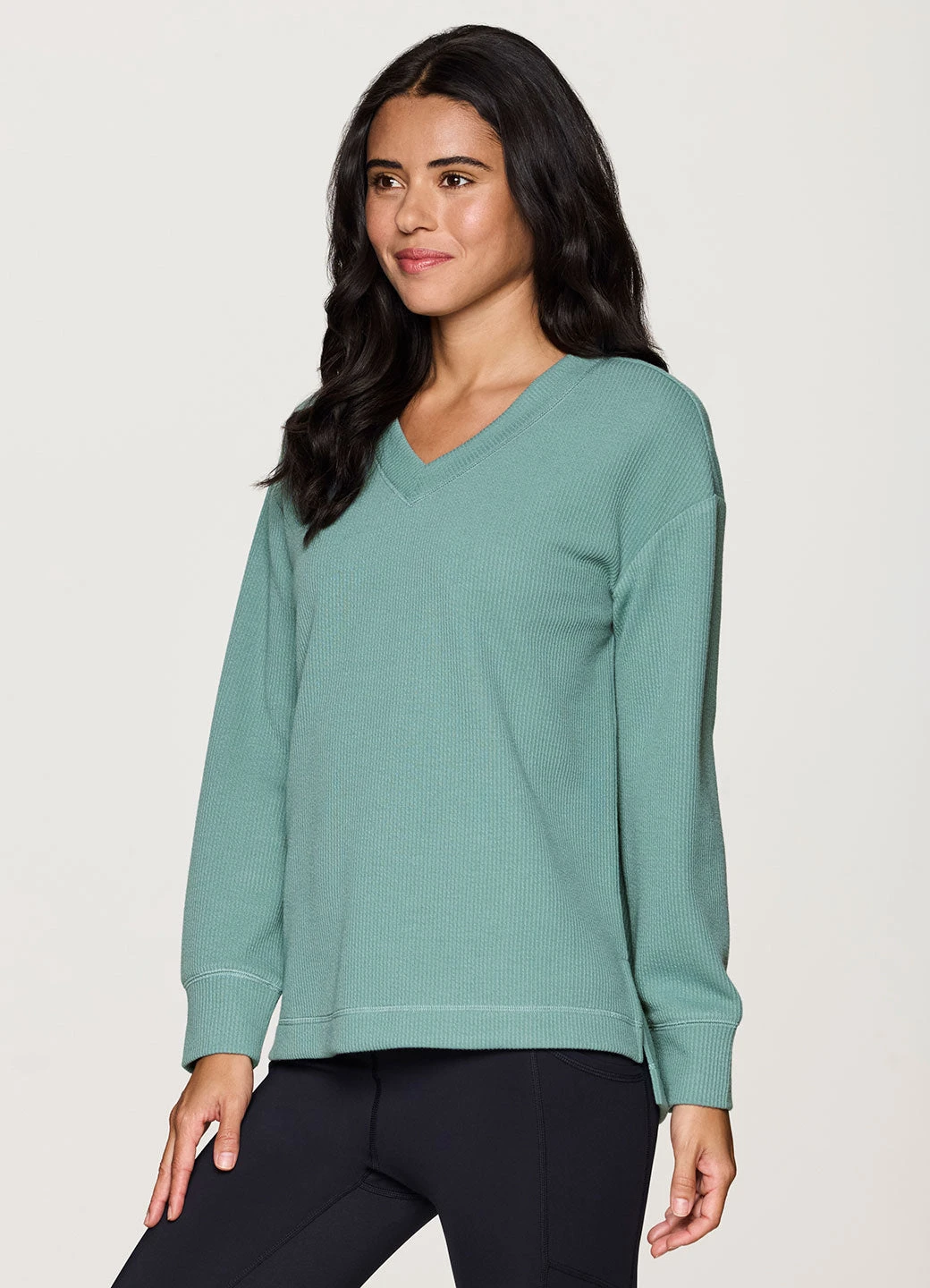 Keep it cozy and chic while you relax or head out in our Weekend Reset Pullover. A relaxed fit with dropped shoulders and side slits combines with ultra lightweight, textured jacquard rib fabric for all-day comfort and breathability. A high/low hemline, wrist cuffs and dropped shoulders make this top ideal as you reset and relax, while a V-neck design adds a style touch for a versatile pullover that effortlessly pairs with yoga leggings or your favorite jeans.