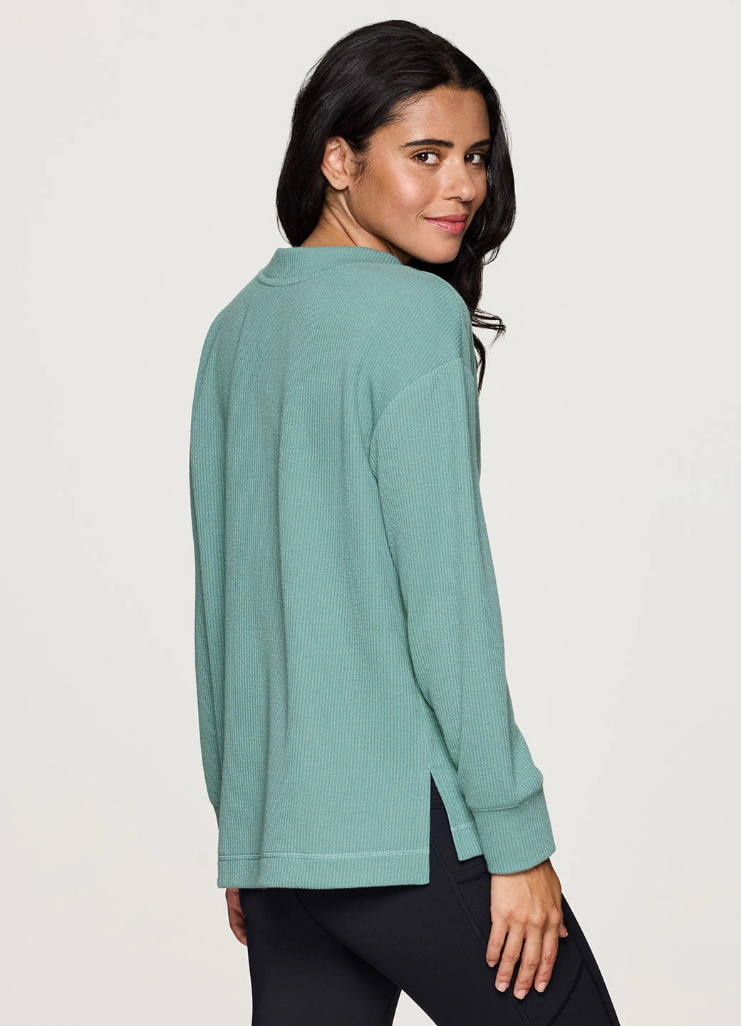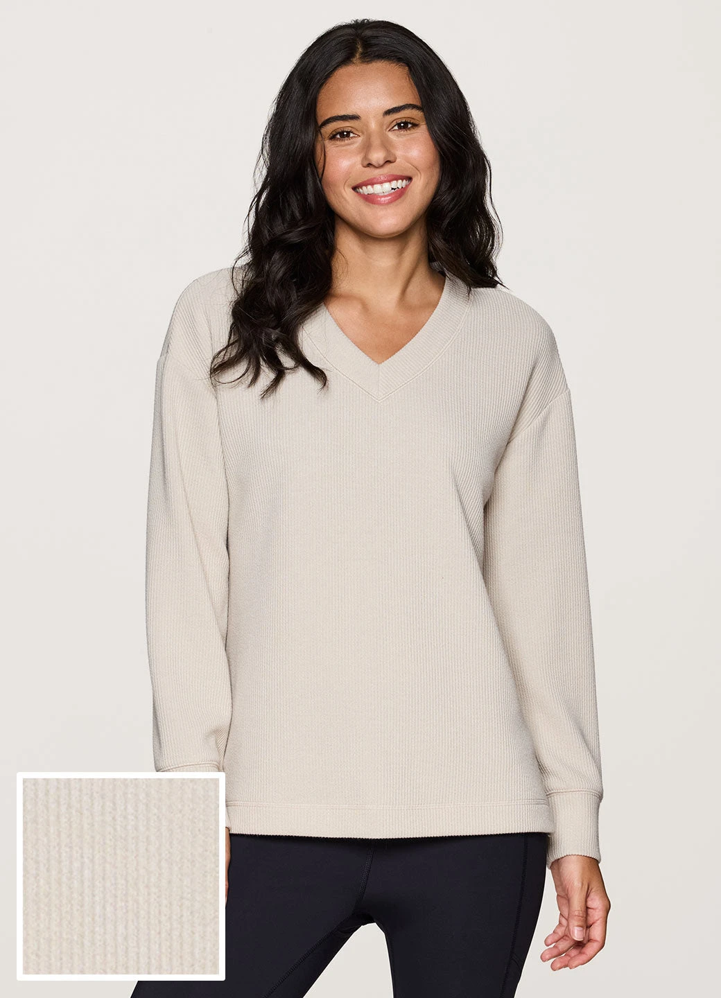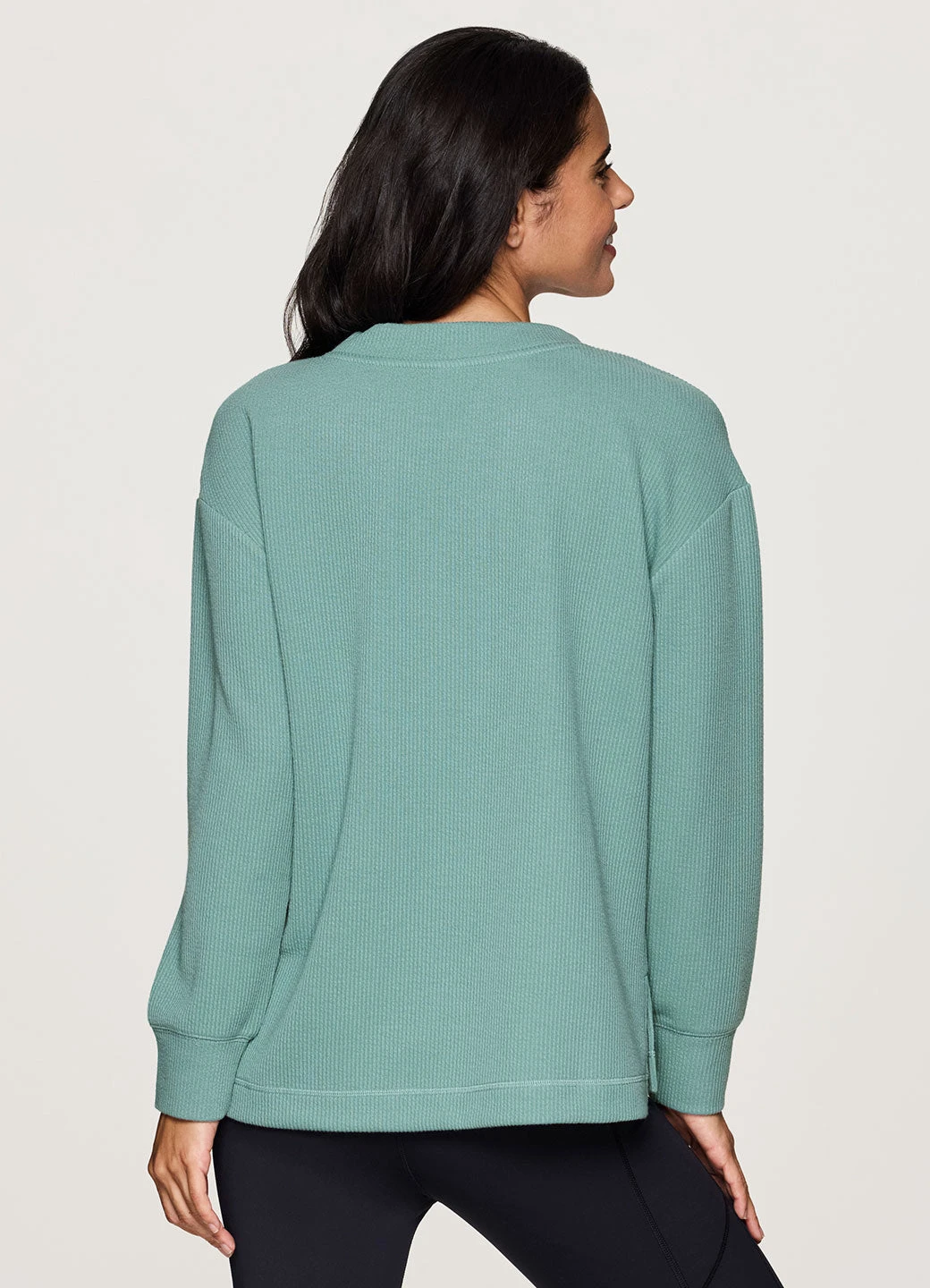 Keep it cozy and chic while you relax or head out in our Weekend Reset Pullover. A relaxed fit with dropped shoulders and side slits combines with ultra lightweight, textured jacquard rib fabric for all-day comfort and breathability. A high/low hemline, wrist cuffs and dropped shoulders make this top ideal as you reset and relax, while a V-neck design adds a style touch for a versatile pullover that effortlessly pairs with yoga leggings or your favorite jeans.