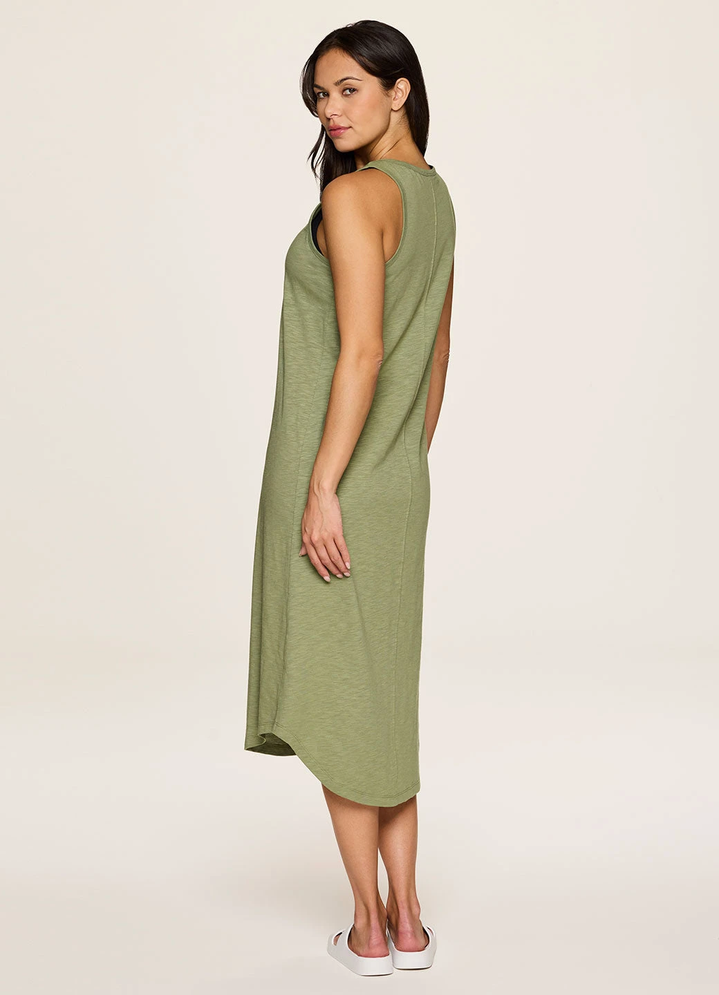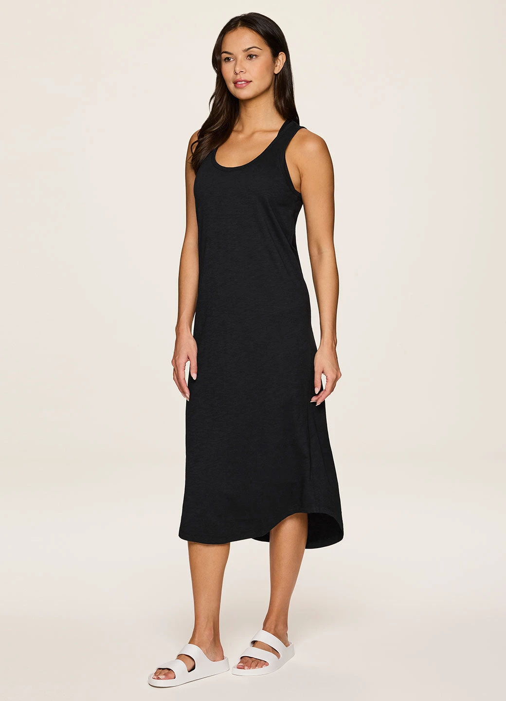 Highlighting comfort and practicality with a relaxed fit, midi length and versatile cotton-blend slub jersey fabric, our Weekender Midi Tank Dress offers a simple, timeless design that you can wear anywhere. Heathered, stretchy slub fabric pairs perfectly with a denim jacket and slides or over a pair of leggings. Whether it’s the yoga studio, day out with friends or as a coverup at the beach, this versatile elevated basic is what’s missing in your closet.